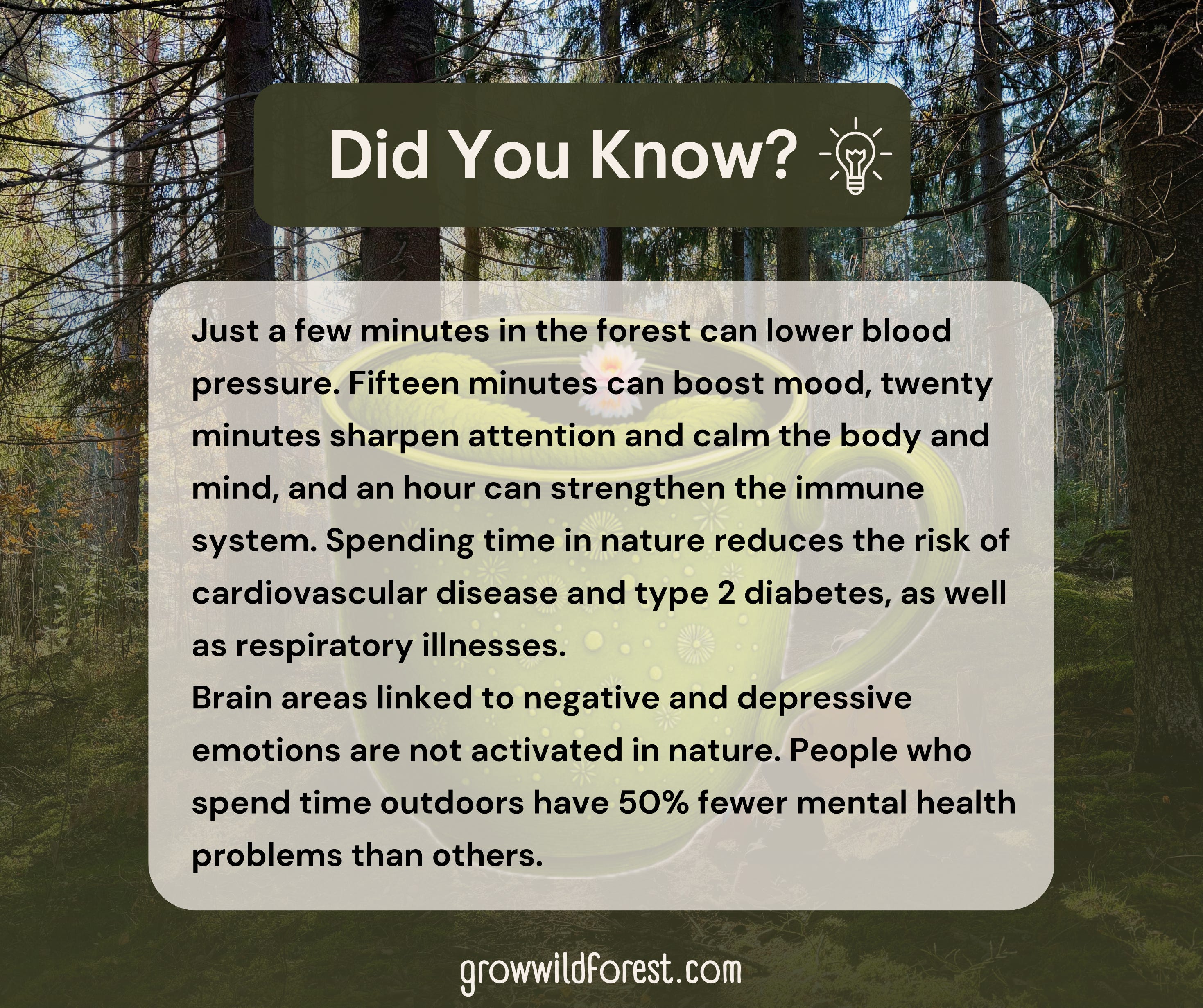 The forest speaks. It nourishes all the senses deeply. Spending time in nature helps restore attention, especially during mental fatigue, because the environment offers things that do not require constant focus. Nature gives the brain a break from the effort of concentrating, which is valuable in today’s overstimulating environment.