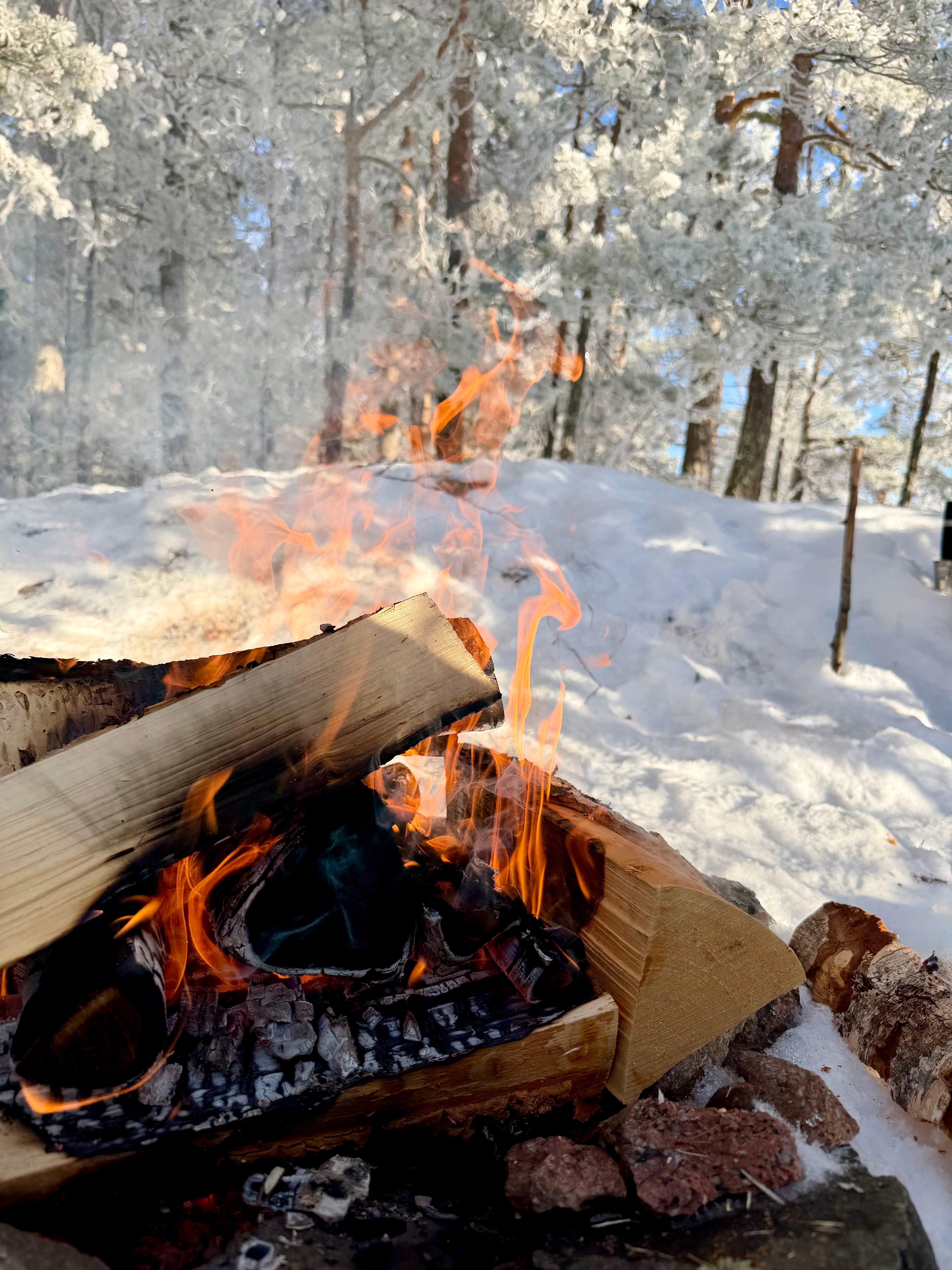 By the fire, the sharp bite of the frost felt a little less harsh for a while. A hot drink and the crackling fire brought that comforting outdoor feeling that makes winter trips like this worth it.