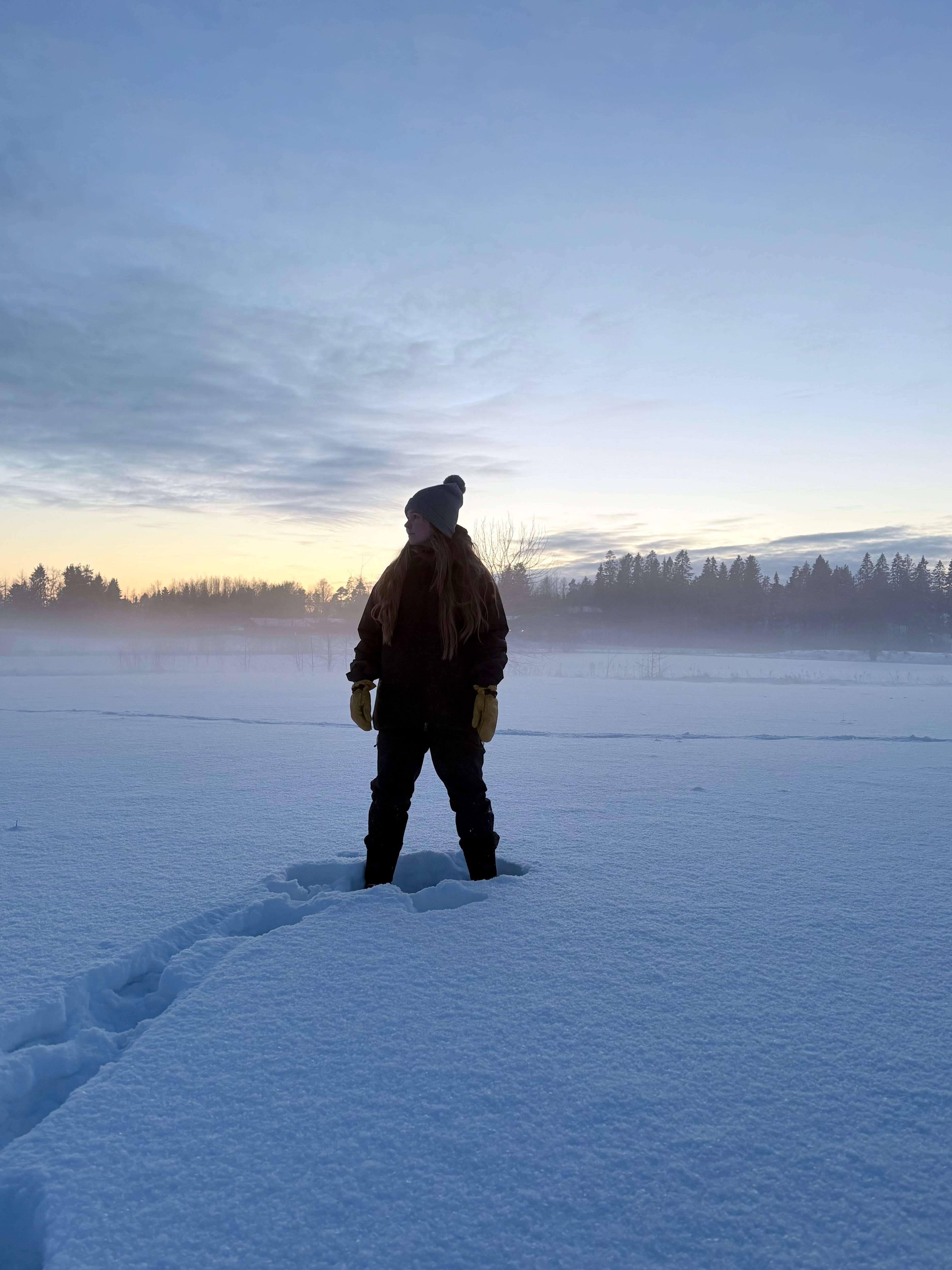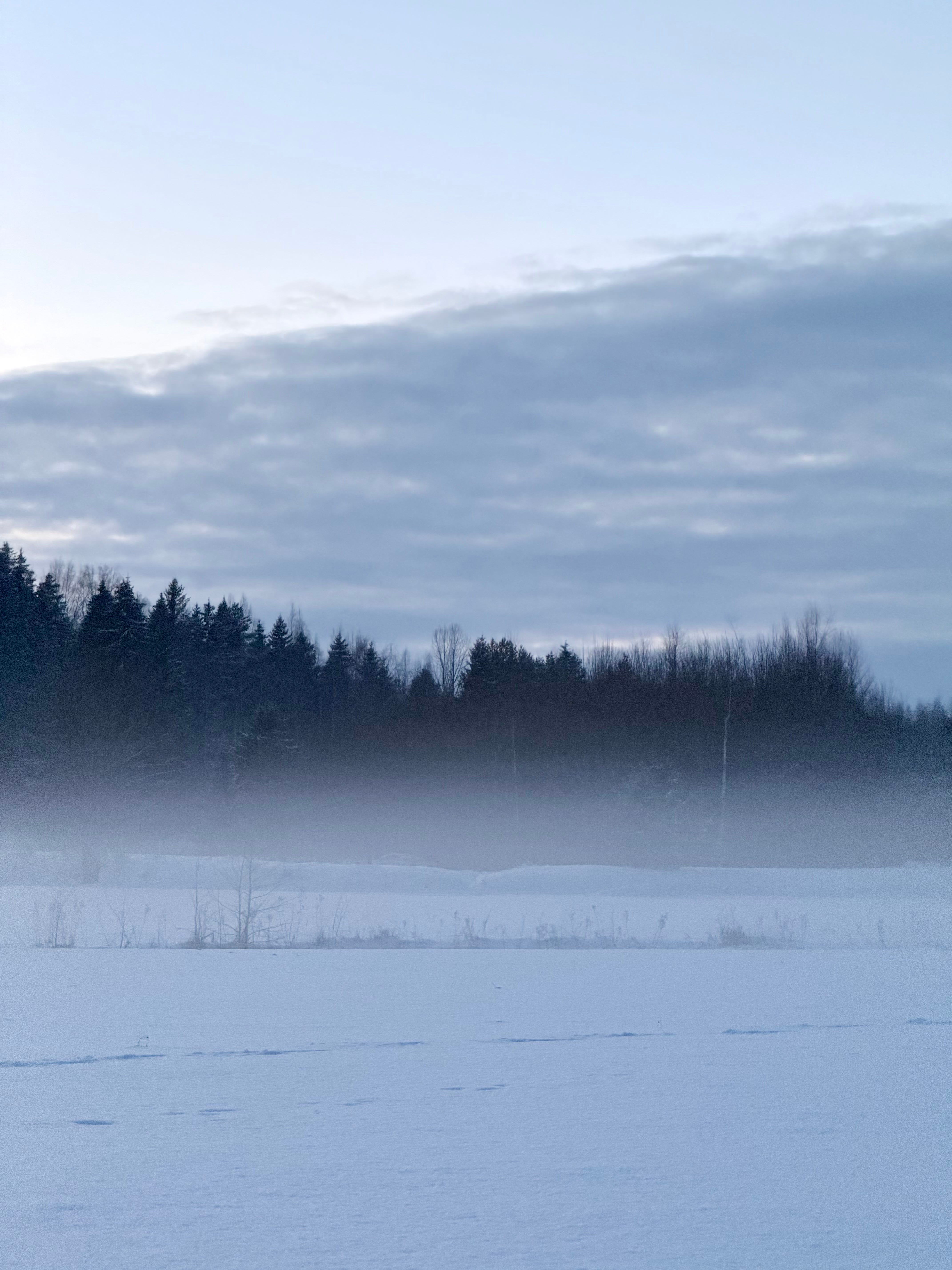 You know those moments when you are not quite sure, are you dreaming? The field ahead of you dissolves into mist, snow swallowing every sound, and the ground beneath your feet feels both real and imagined.