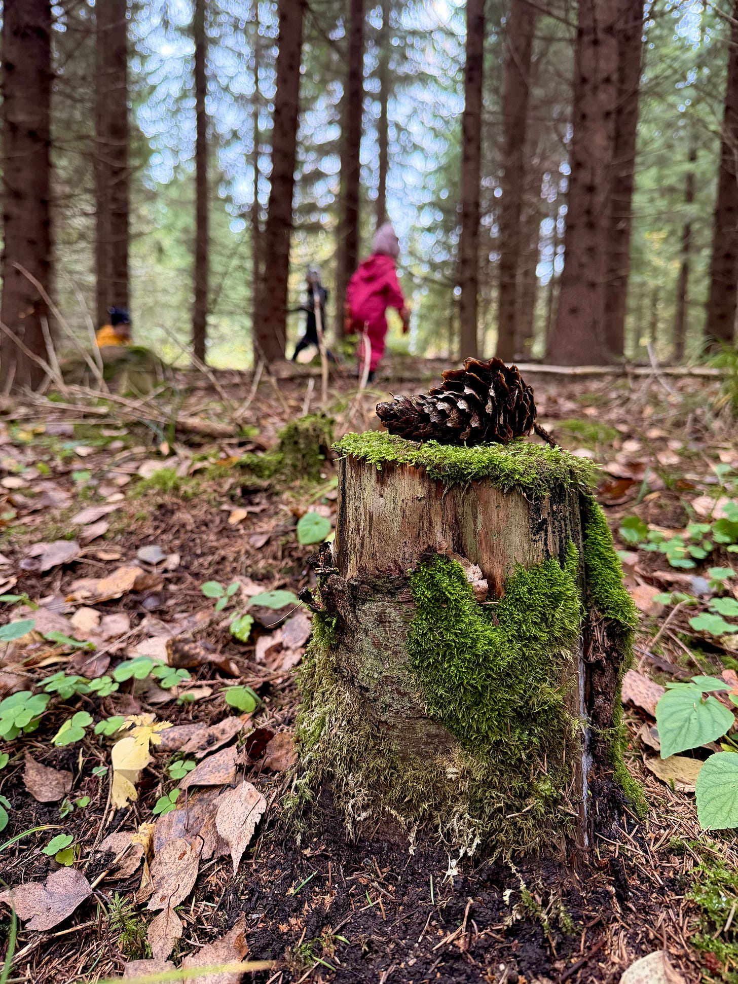 When 3yo woke up, we headed to forest. Children played together: first something about hunting, and then some forest trolls. We also tried to find oak — we wanted to make acorn coffee — but there wasn’t a single one. 5yo really wants to taste acorn coffee and so do I. I heard about it from Tony Mette Aamodt, and it sounds worth trying!