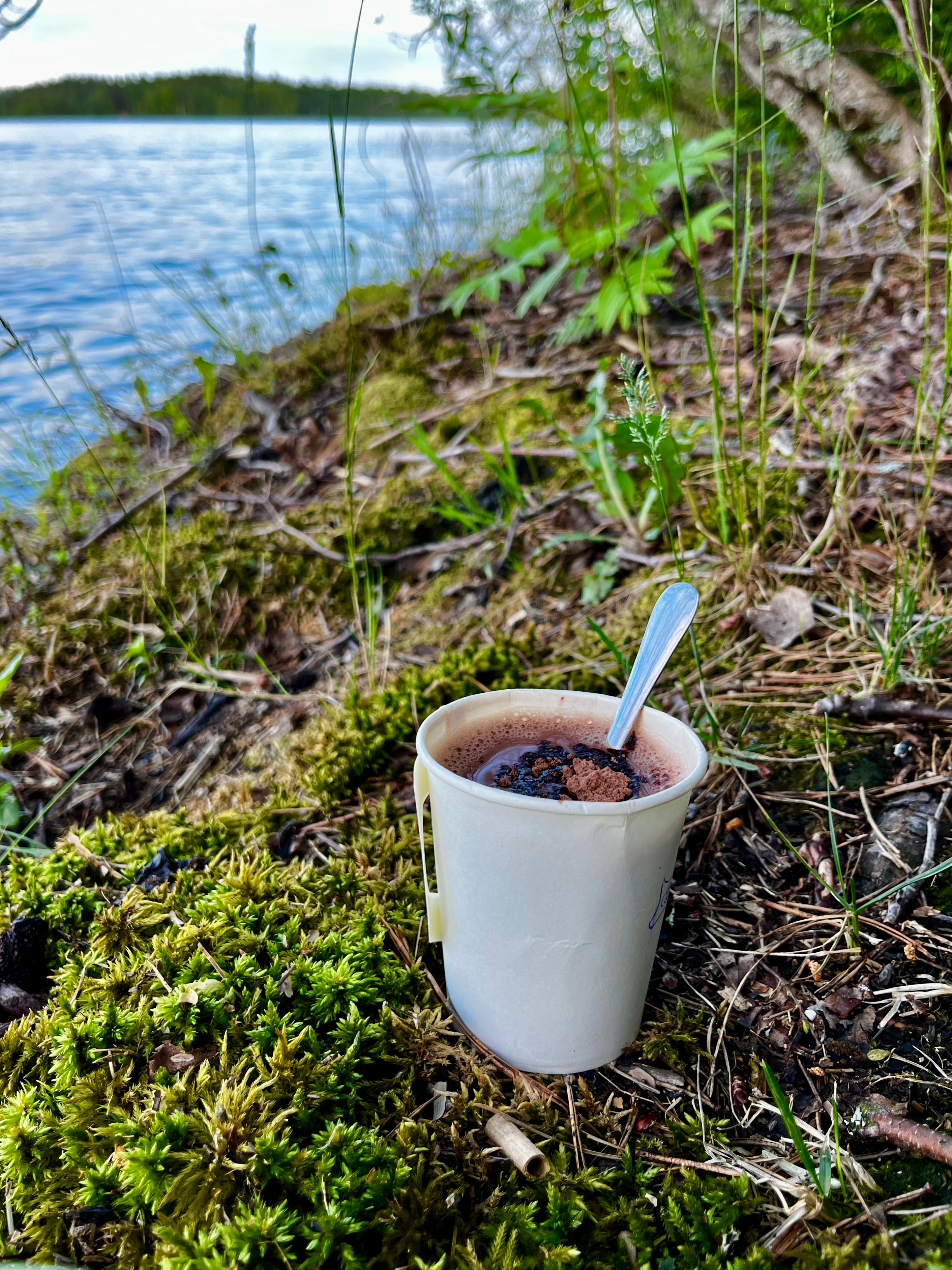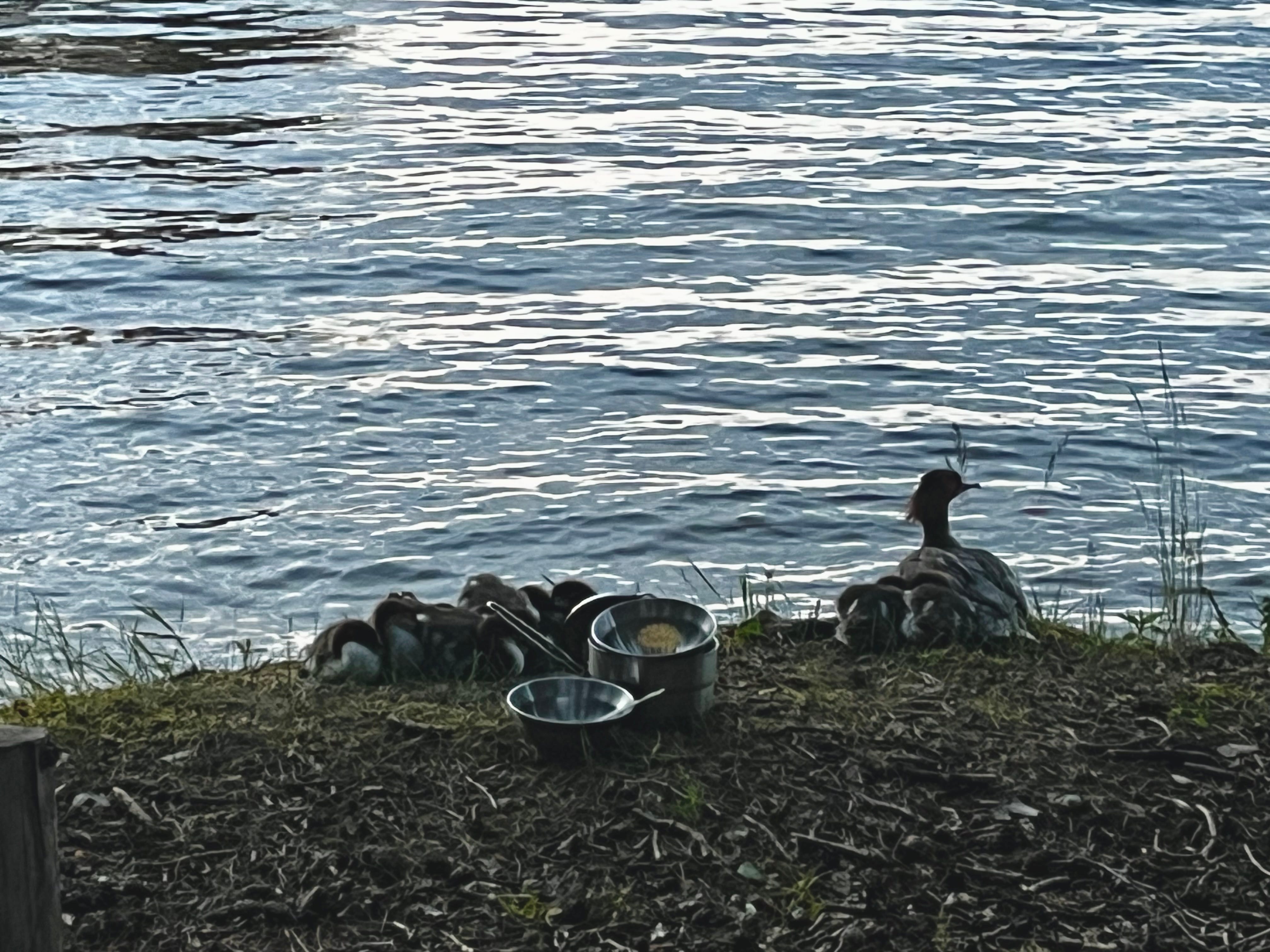 Late at night we drank hot chocolate and kids went to sleep in the tent. I had my own me-time: just me and Päijänne.💙 (And a goosander-mother with her ducklings. They settled right by the tent on the shore to stay overnight.)