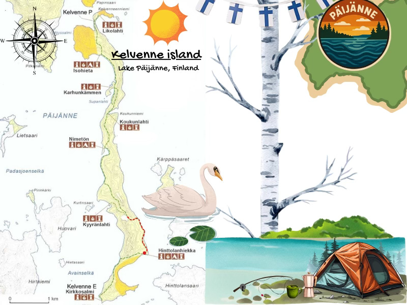 Kelvenne is one of my favorite islands. I visited there for the first time last summer. We docked our boat to long shore and played with sand and water all day. We had a tent where we slept, but also we slept in the boat. During the summer I got to know all the different beaches of the island and went SUP-boarding in the most inland-reaching bay (and also accidentally dropped my phone there, but my better half dived to get it. Thankfully that happened in that bay where the water is not deep. Lake Päijänne is almost 100 meters deep.)