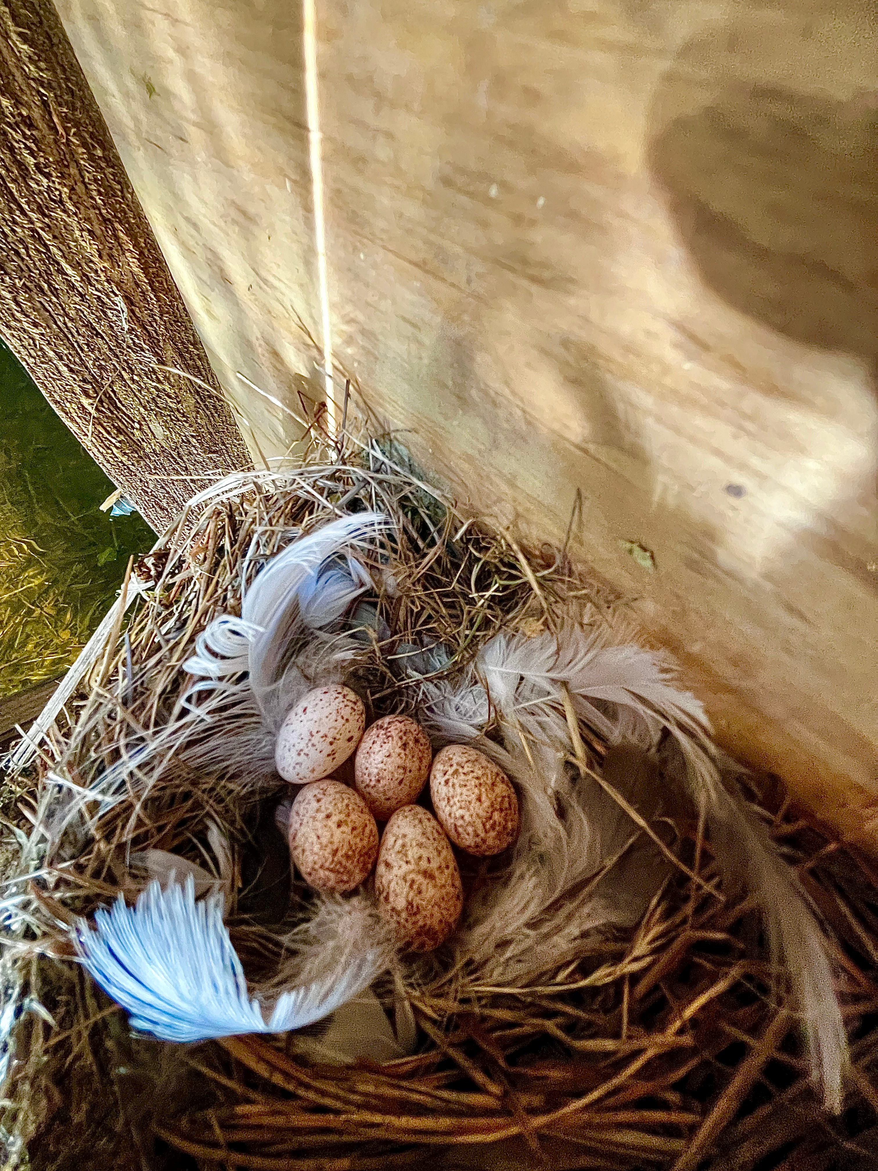 So, I’m happy to notice that the world has changed for birds. My son found a swallow nest under our cabins deck while playing in the water with his boat. He told me, and asked if he could take a picture with my phone, once he was already beside the nest. I gave him my phone and he took a couple of pictures. Then he came out, gave the phone back and kept playing in a different spot. Swallows seemed not to be interested of us and we are doing anything we can to let them be at peace.
