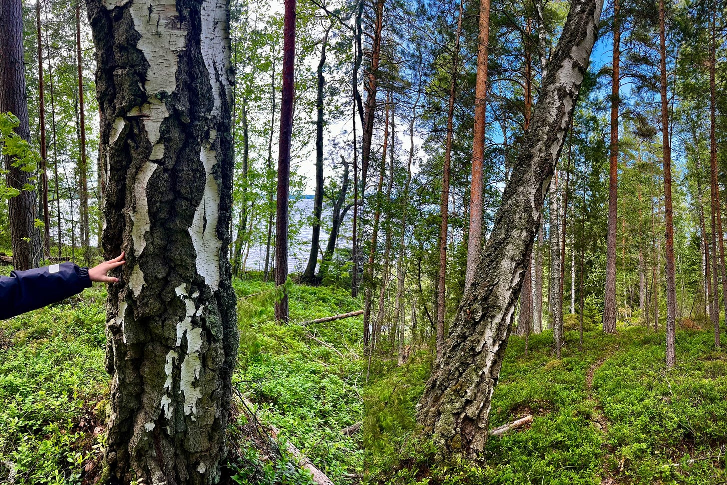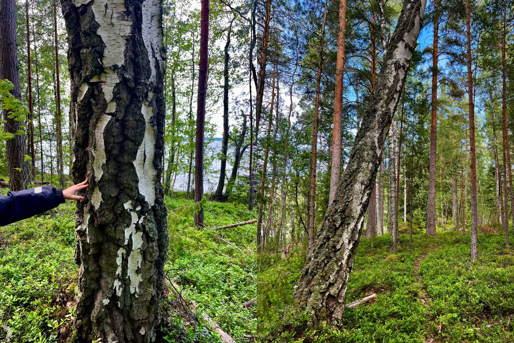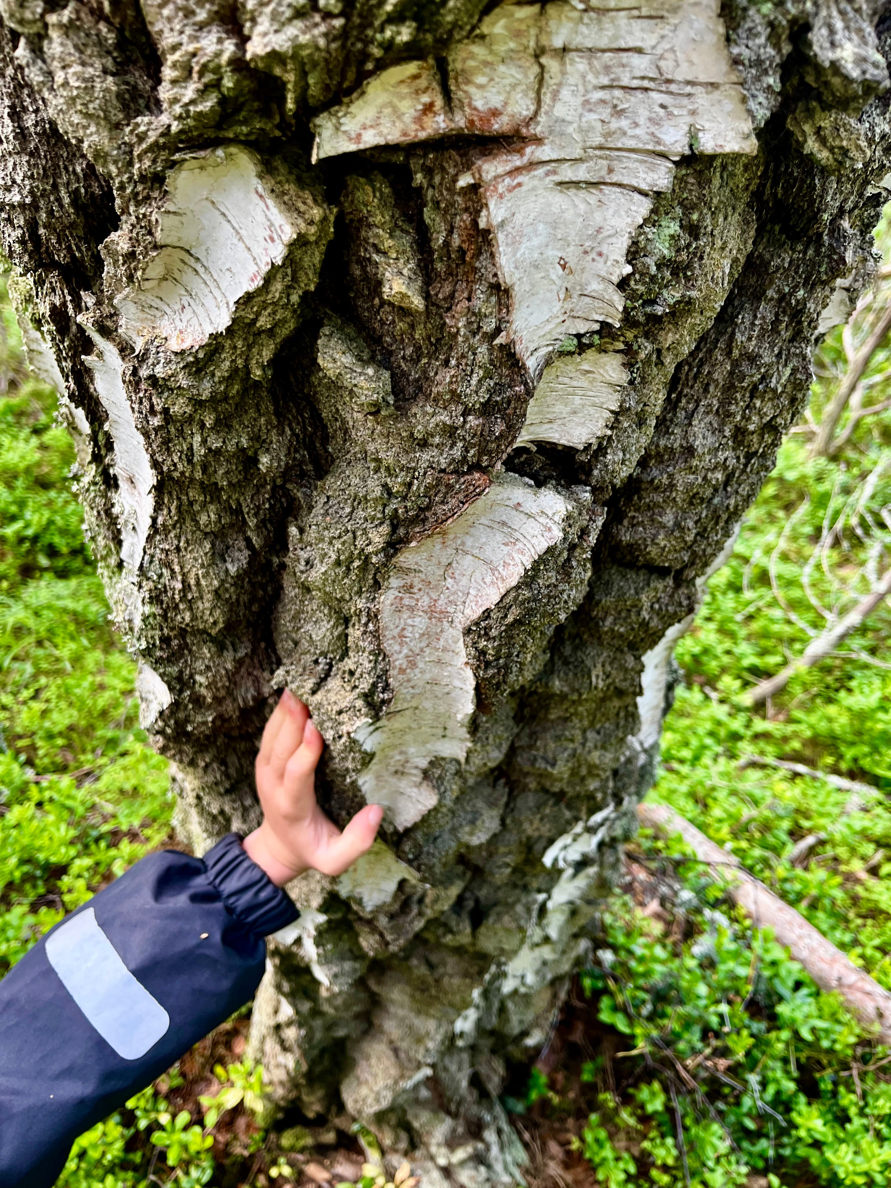 After snack time (and dozens of 'coffee & floating flower' pictures) we continued our way along a path that followed the shoreline. This old birch stole our attention with its thick, wavy bark. As if it had burst out of its own skin.