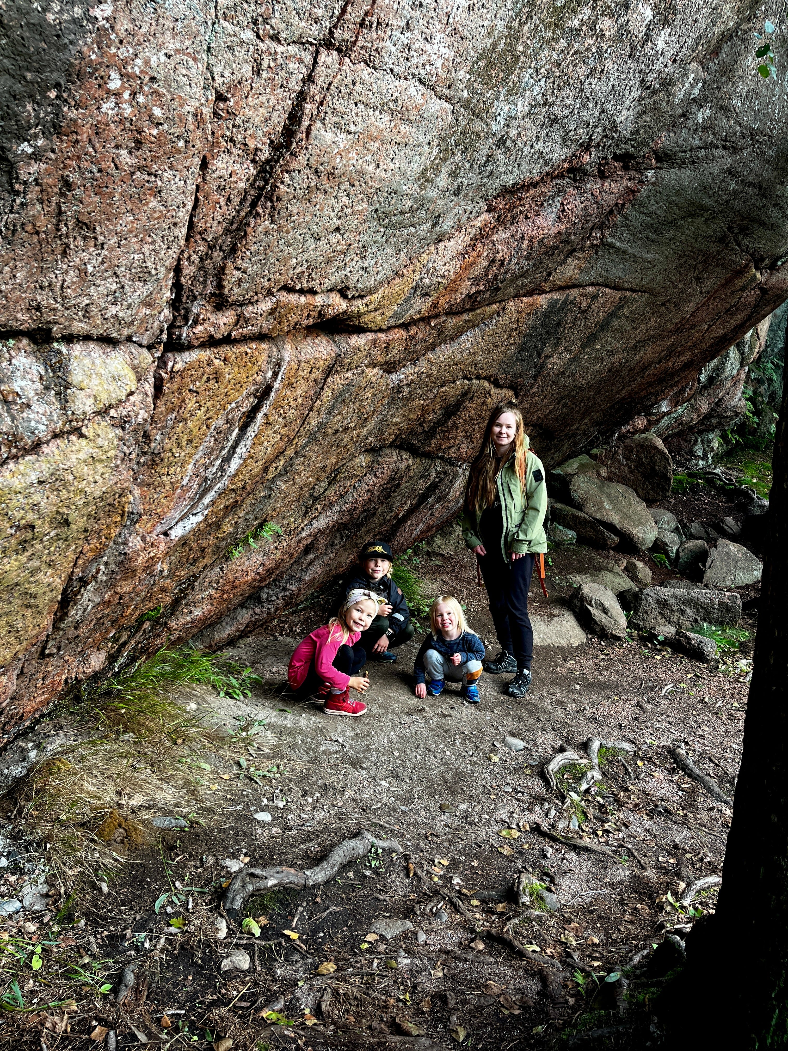 The kids were so enchanted by the place that they didn’t want to continue our hike, so we let them play for a while. They became Stone Age explorers, climbing, whispering secrets, and imagining hidden treasures. Their giggles made a cave-like rock shelter feel even more magical.