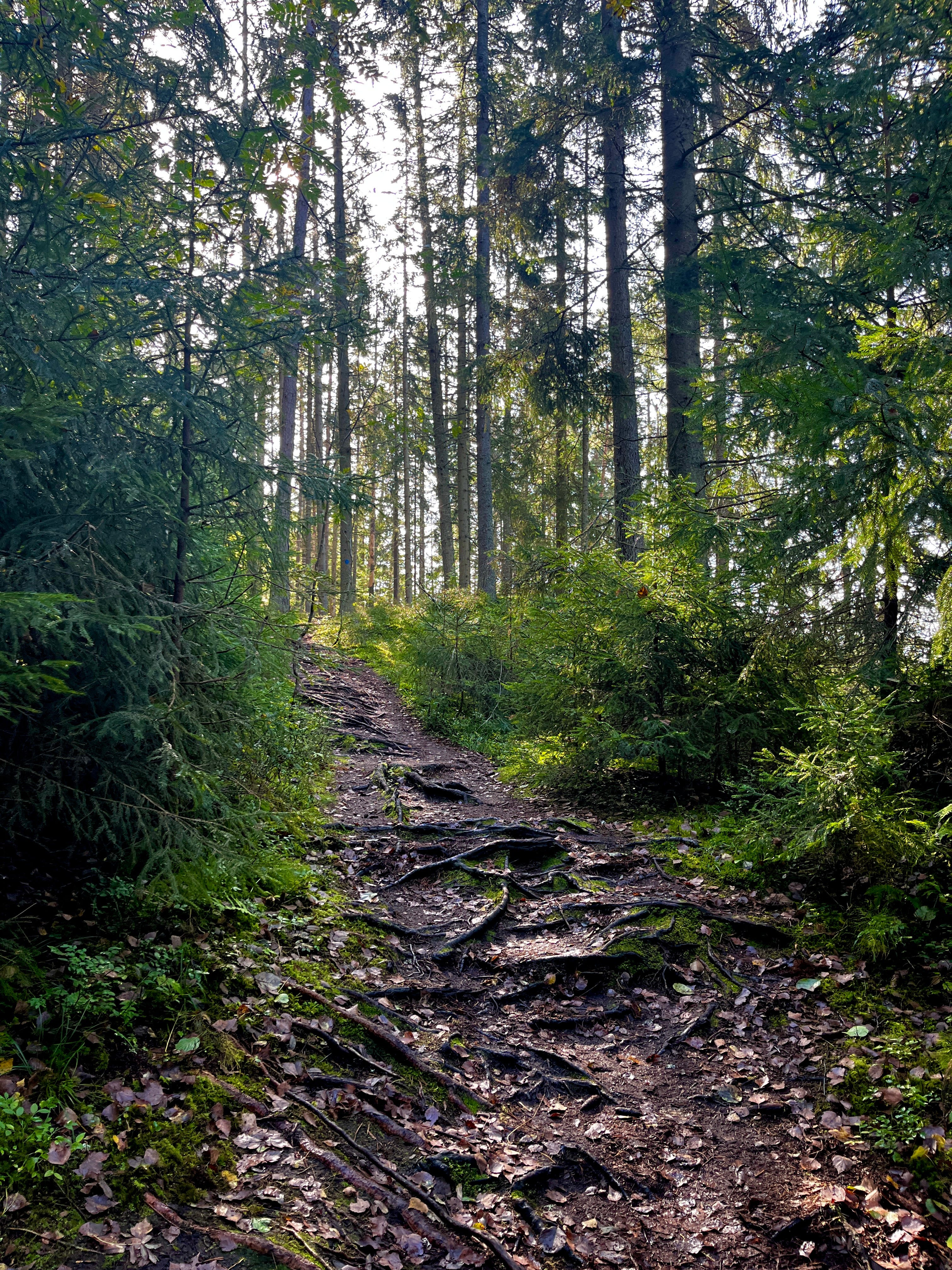 The path was tangled with roots, almost as if trees were holding it together. My 3-year-old got a bit frustrated with the roots, which is understandable — such short legs and those slippery roots can be tricky!