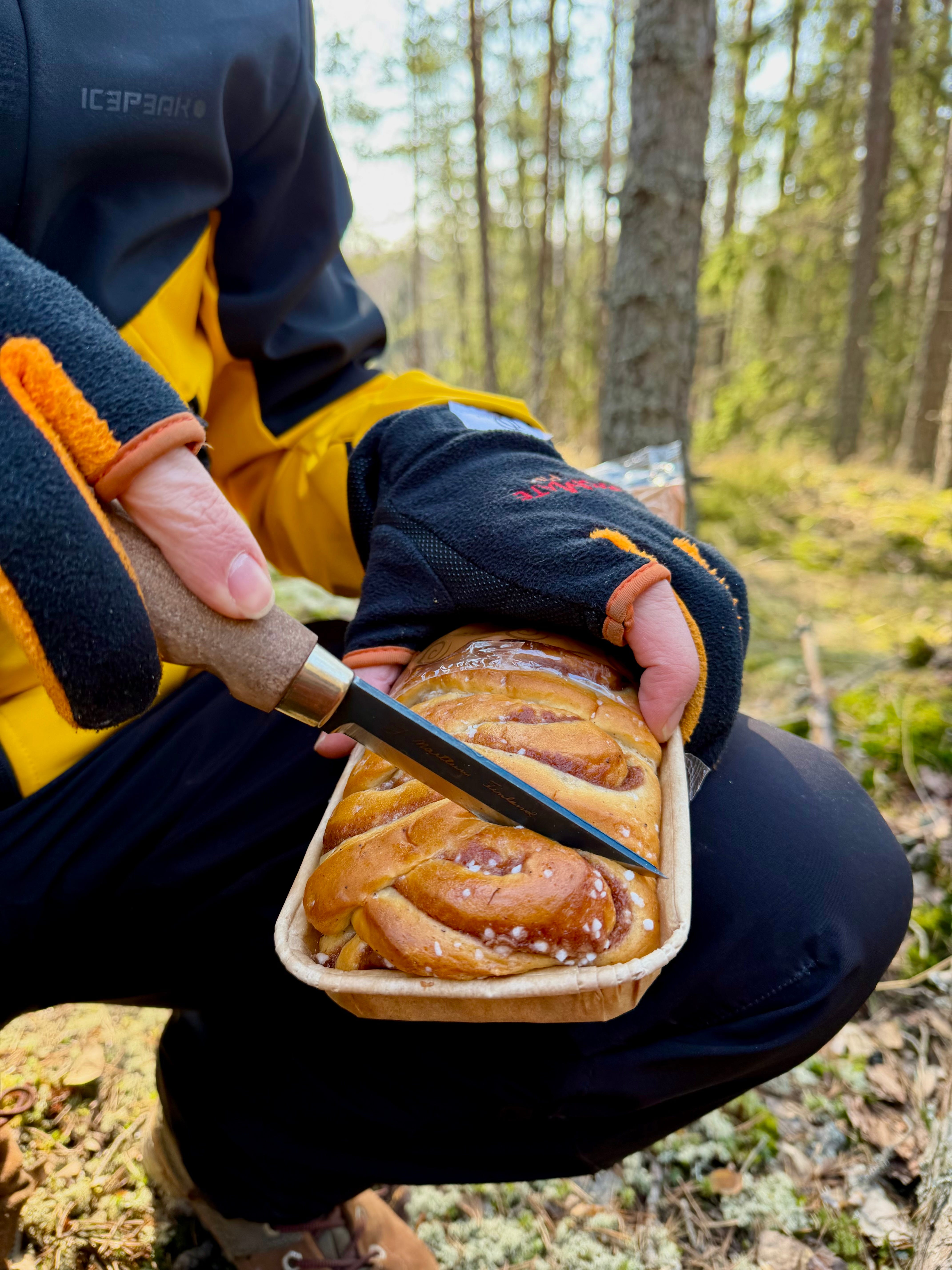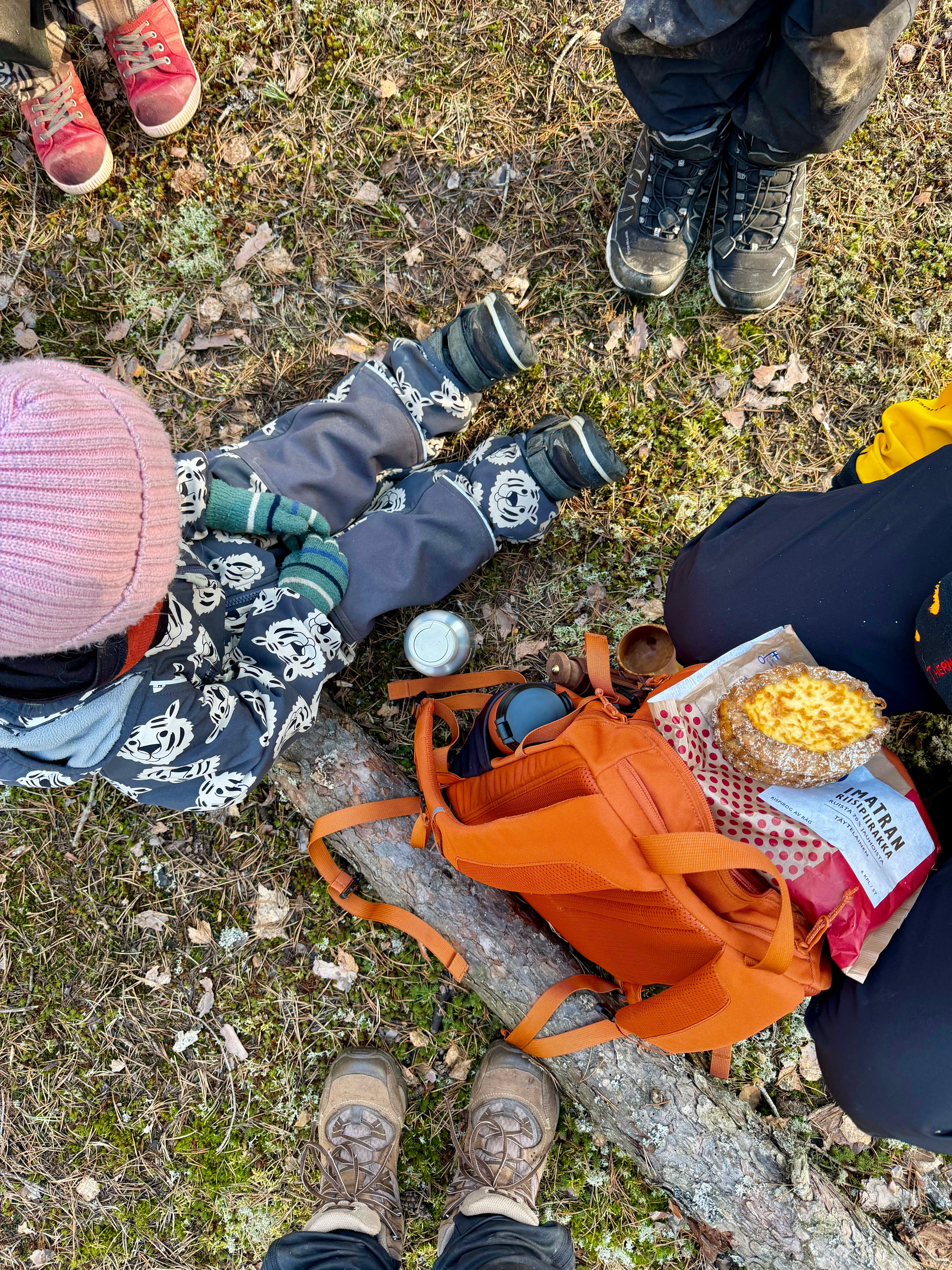 My partner had packed Karelian rice pies and a sweet bread loaf. While eating, we counted how many different kinds of moss we could find on the hill. If I remember correctly, the children found six.