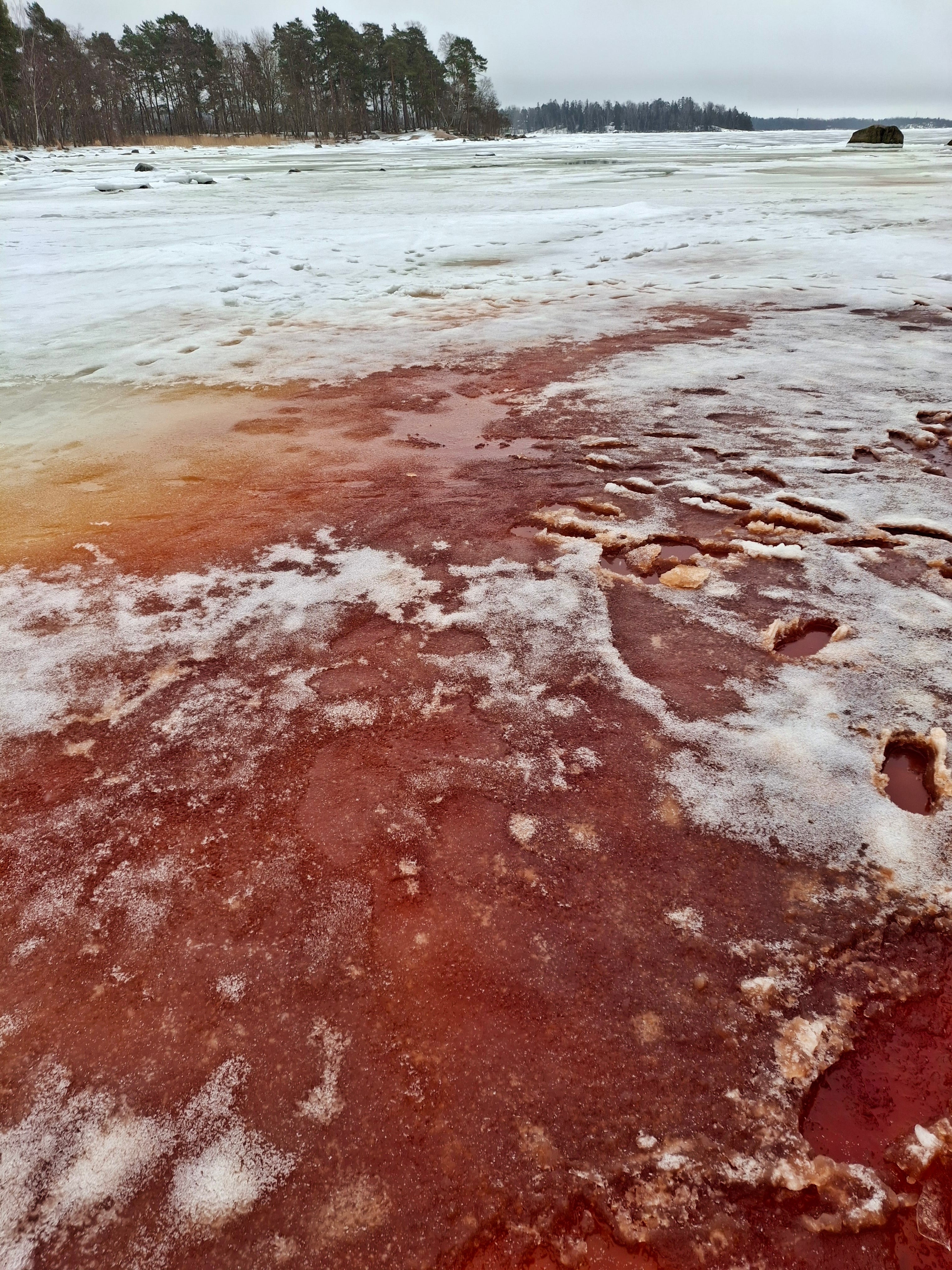 In March, people walking on the sea ice in the Gulf of Finland were surprised. The ice was bright red. The sight was almost surreal. However, it was a natural phenomenon. The cause was bladderwrack, and the phenomenon was actually very positive.