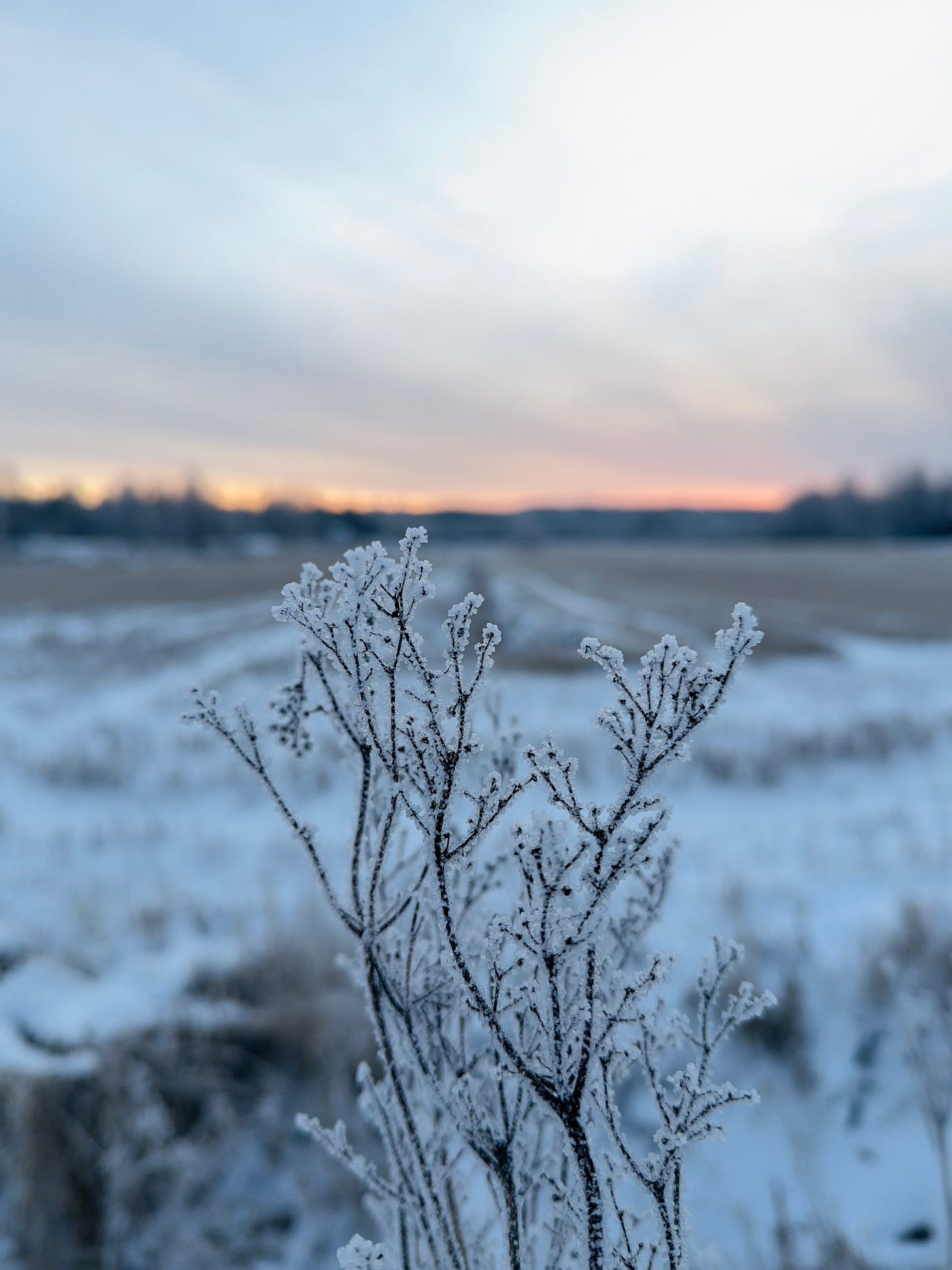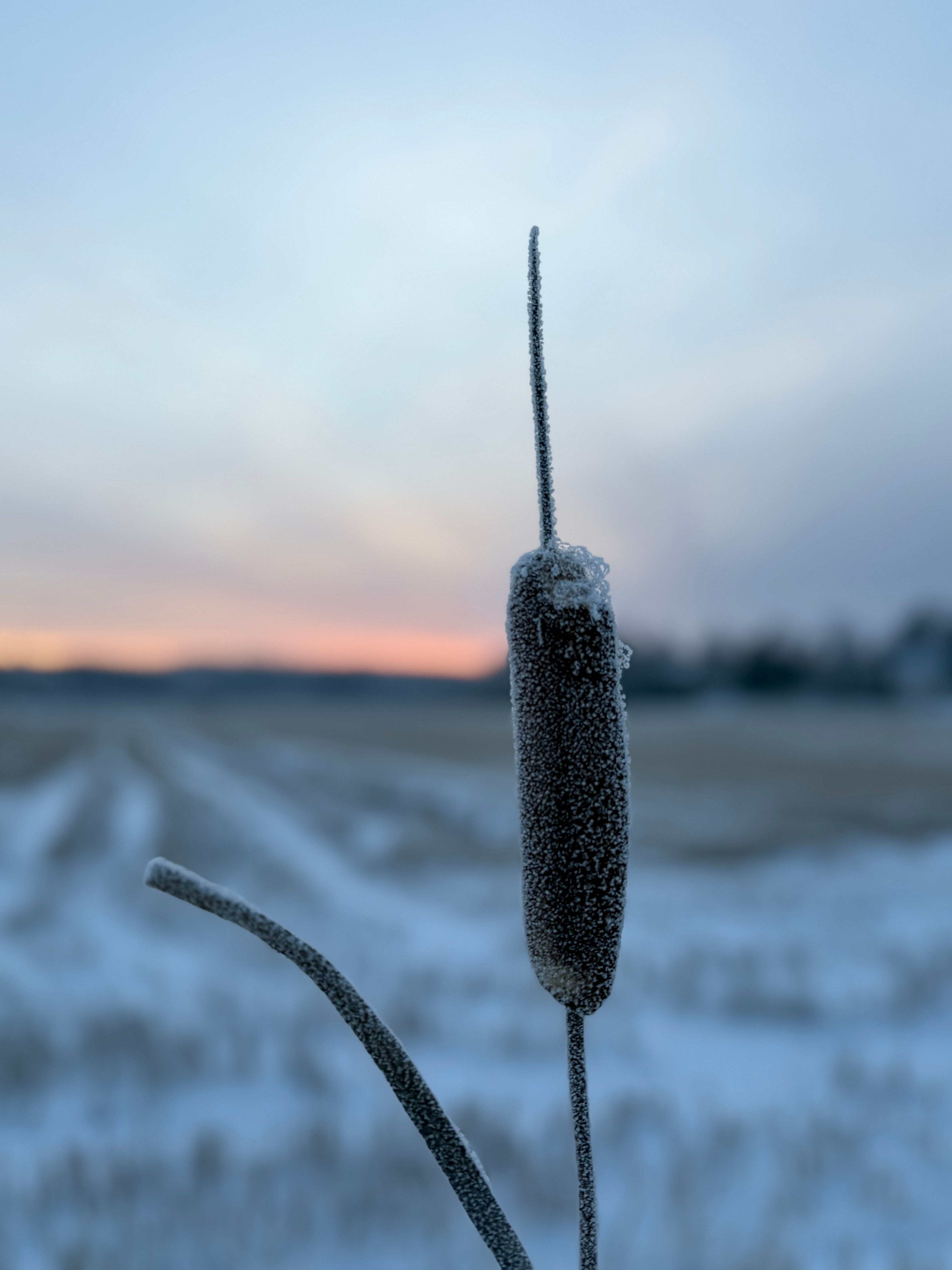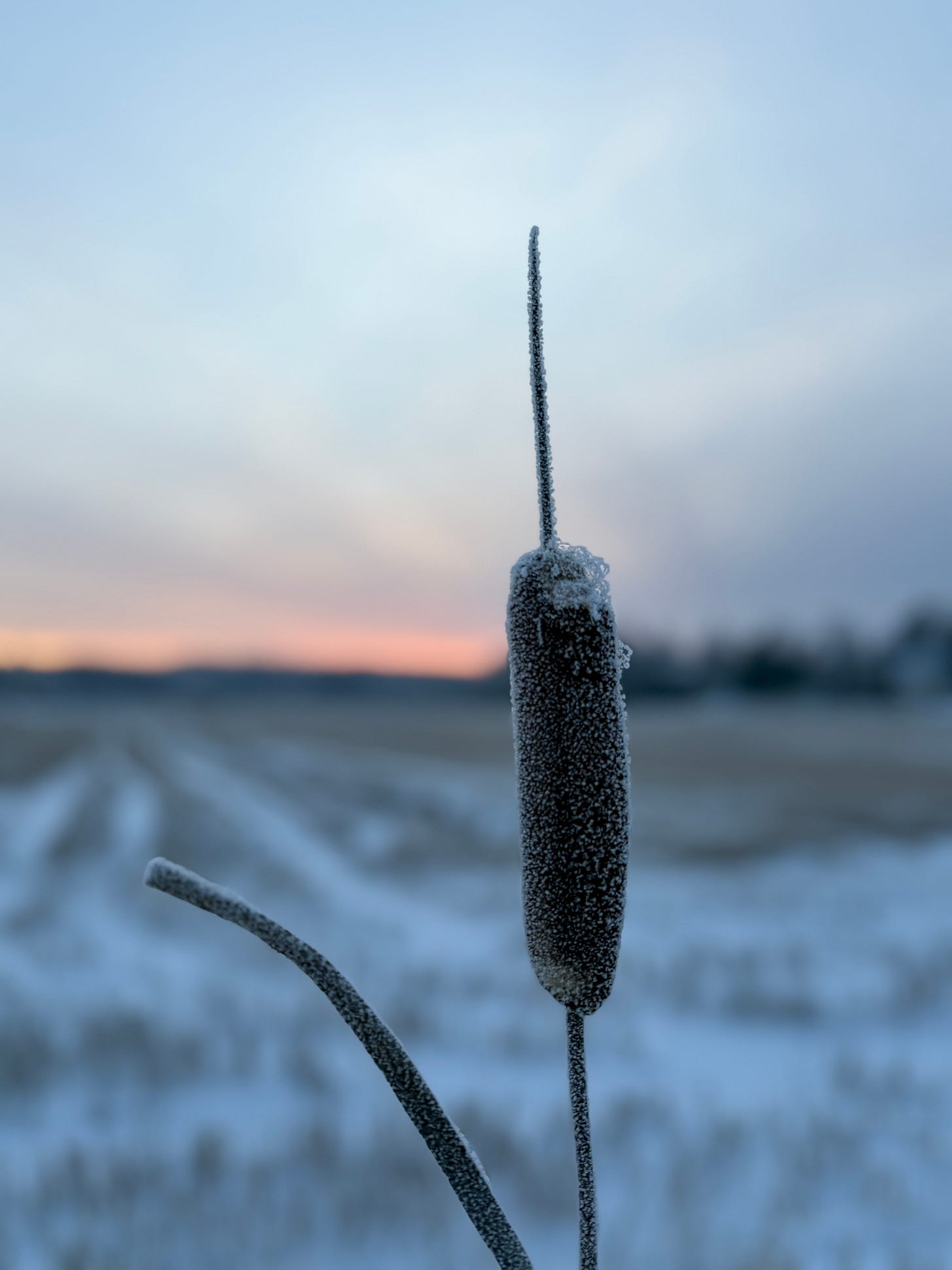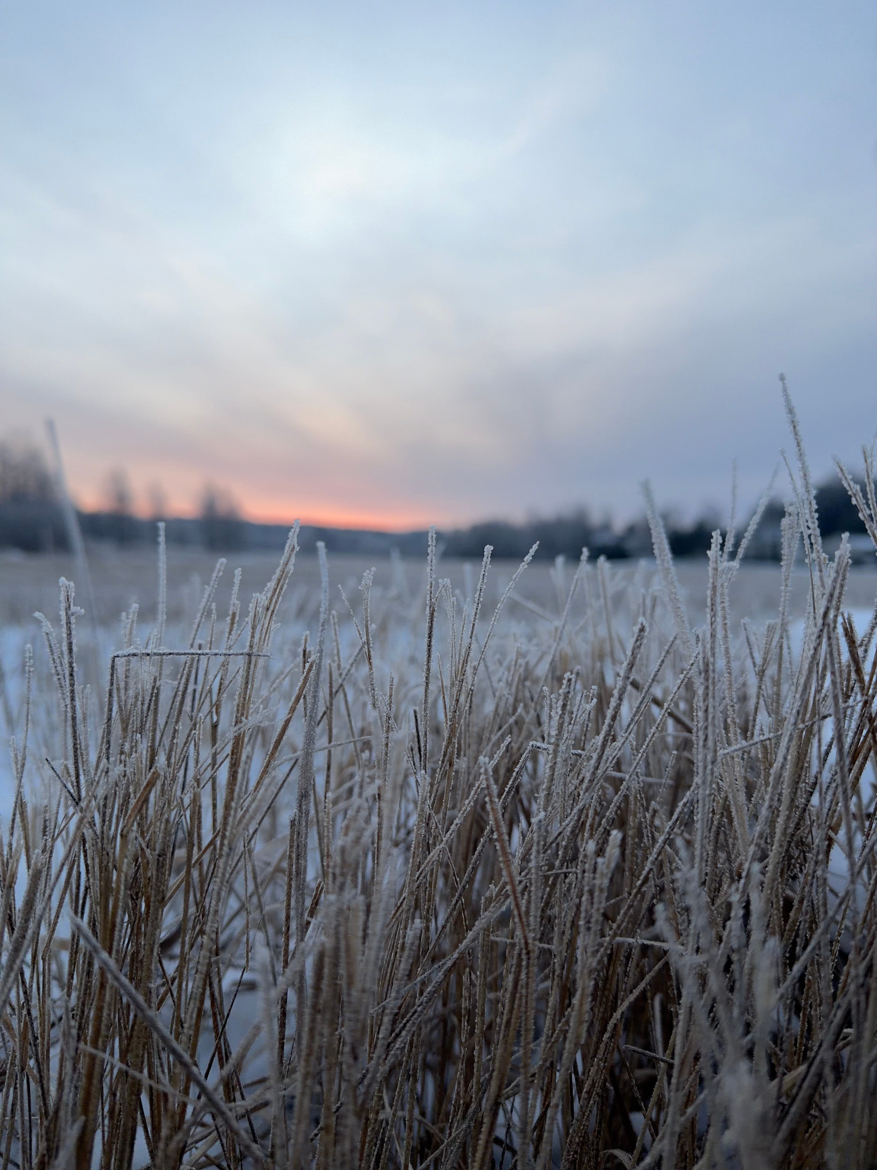 The frost-covered winter stalks stood along the edge of the field, welcoming the first sunrise of the year wrapped in their icy coats. The streets were empty. It felt like we were the only people awake. The snow creaked under our feet. Even the ditch that usually flows fast had frozen completely solid. The world had frozen still.
