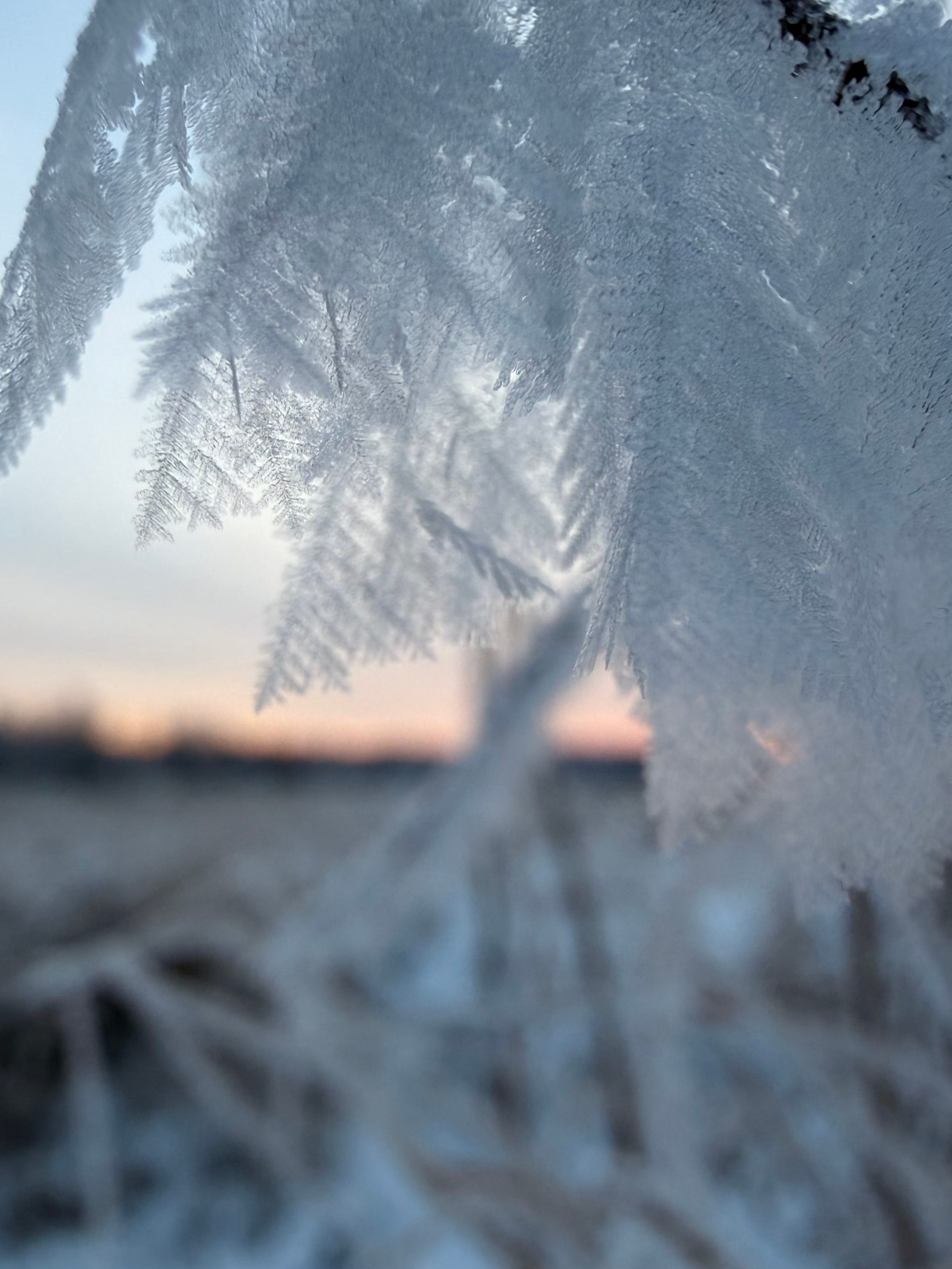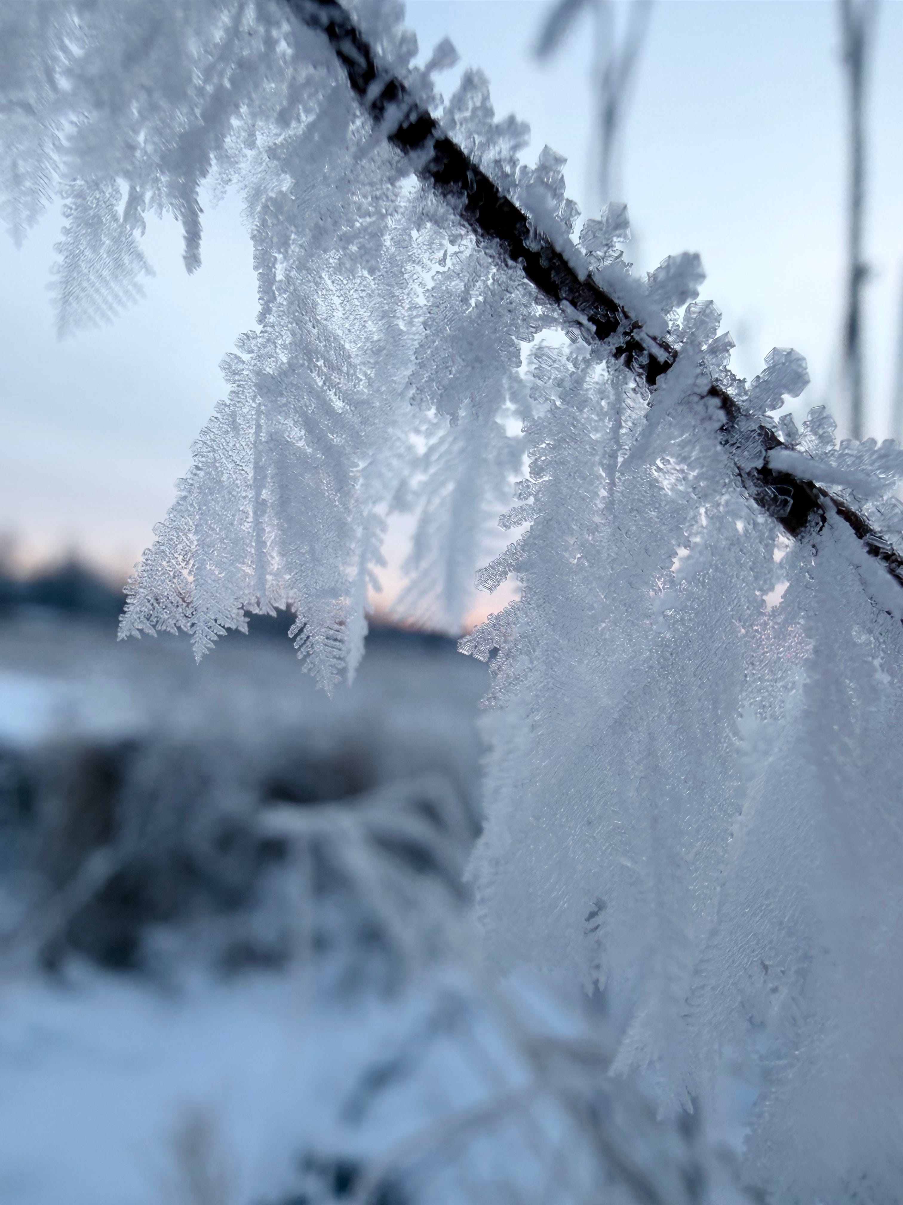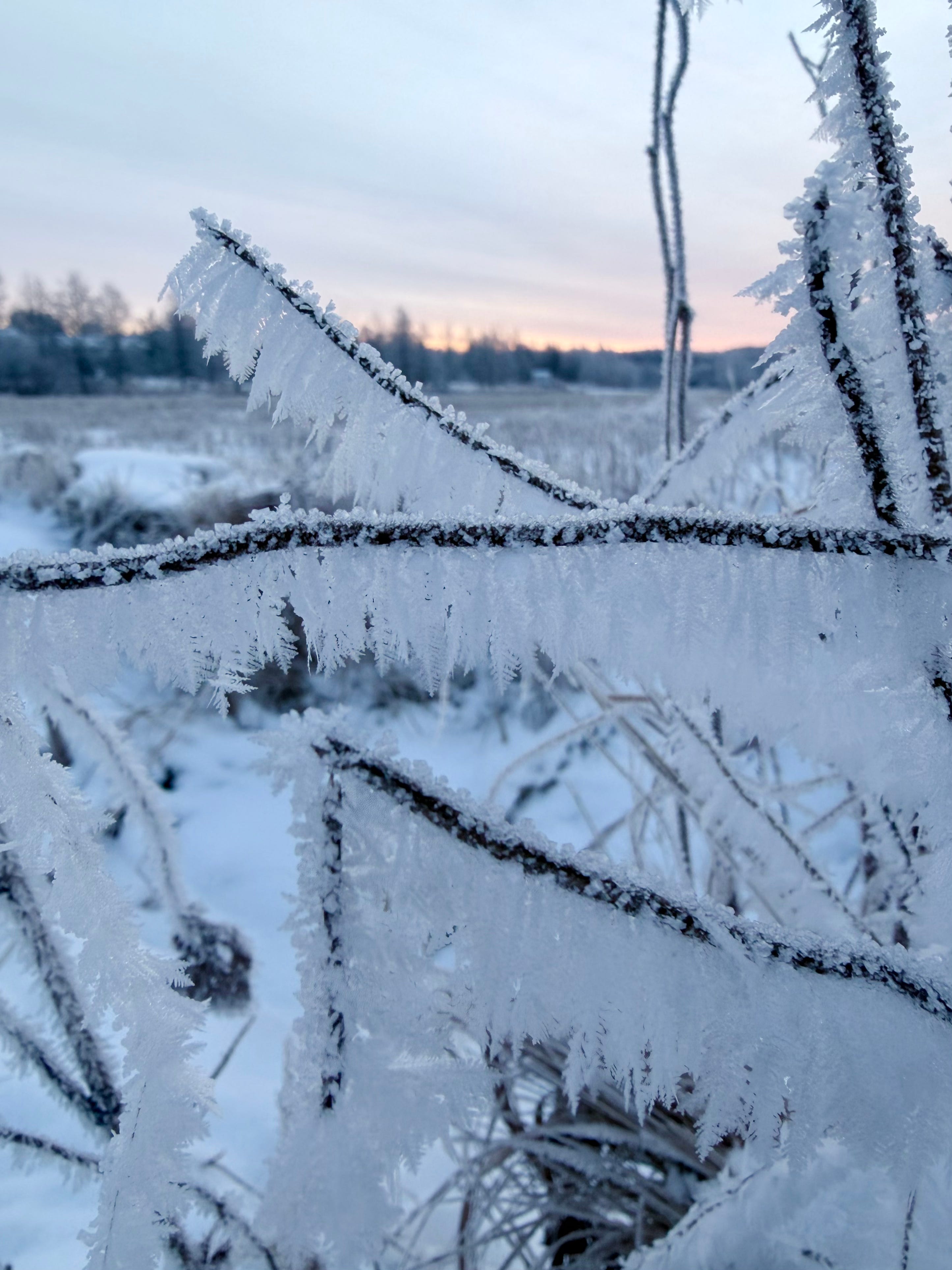 The frost had formed tiny feather-like crystals. I photographed them with numb fingers. Year after year, the same thing amazes me: how nature can be so beautiful and ever-changing, full of surprises.