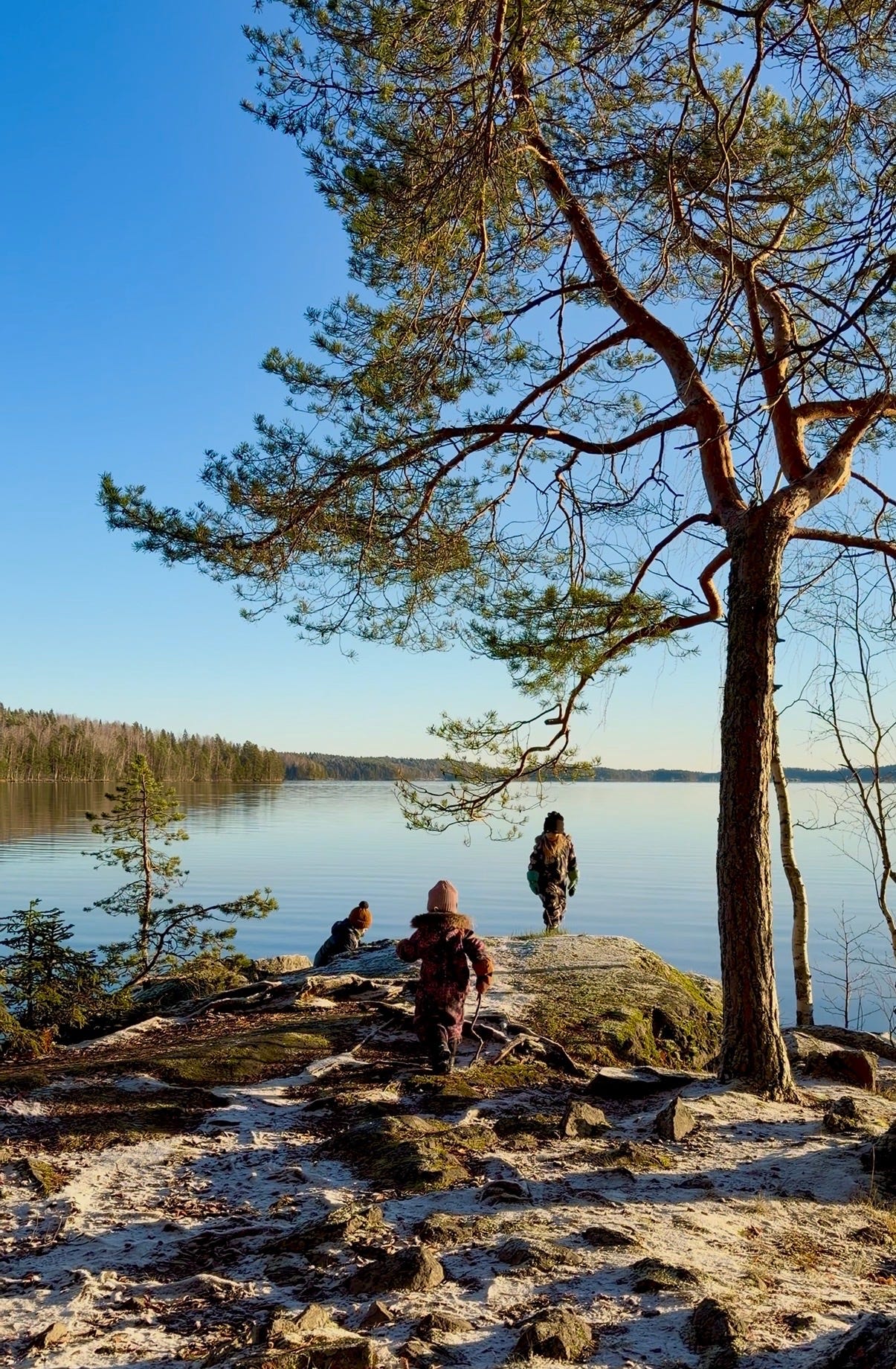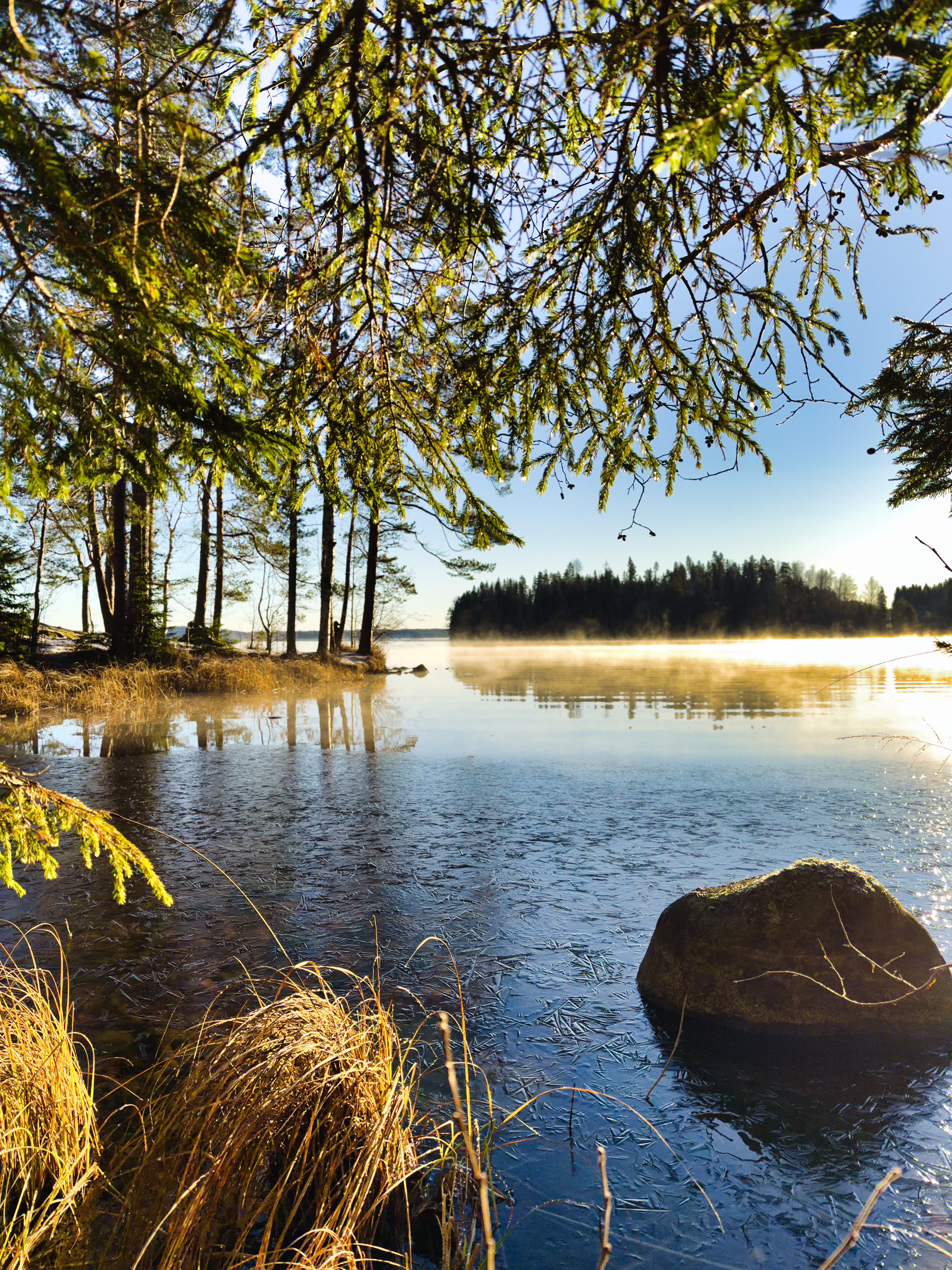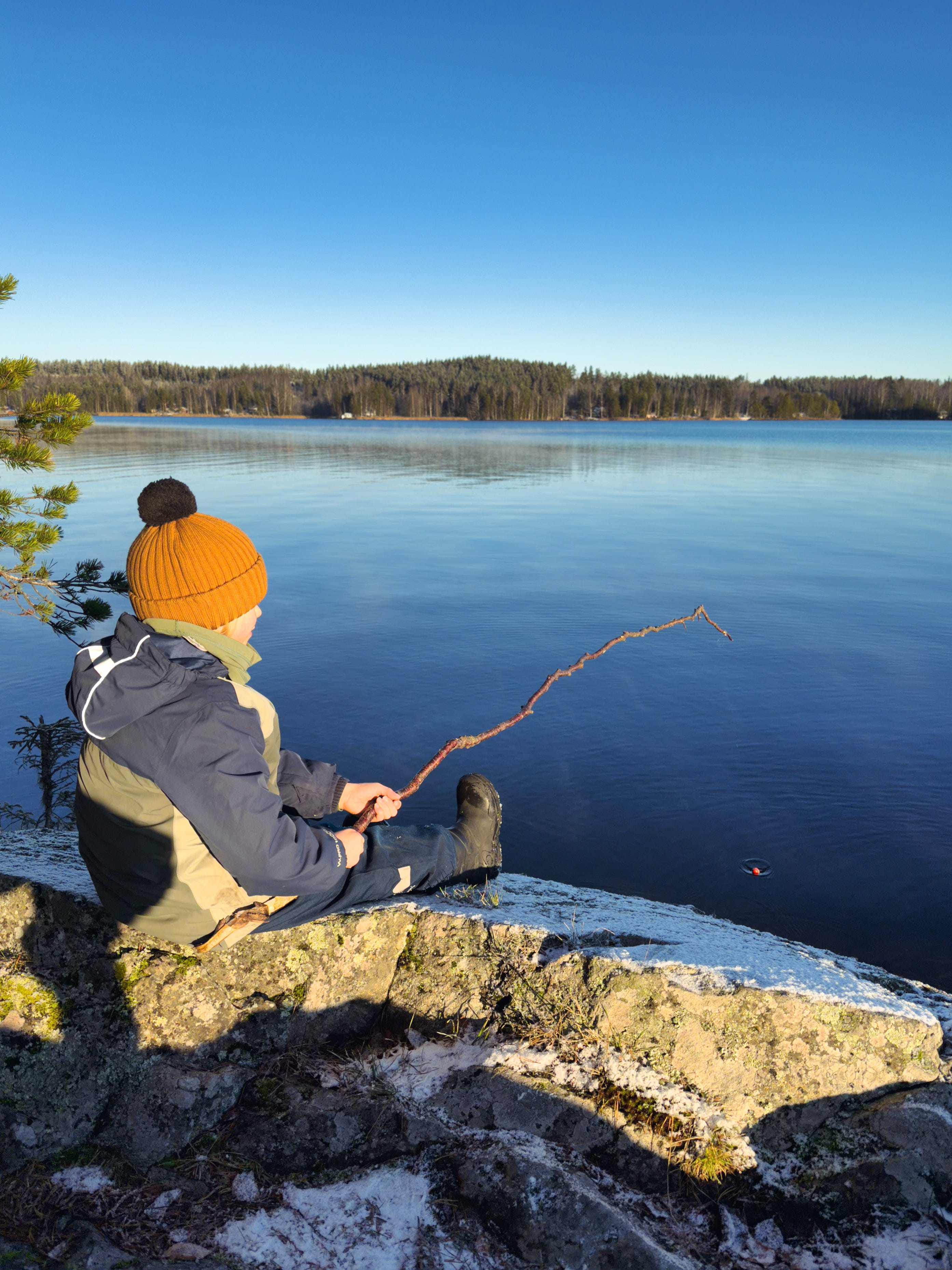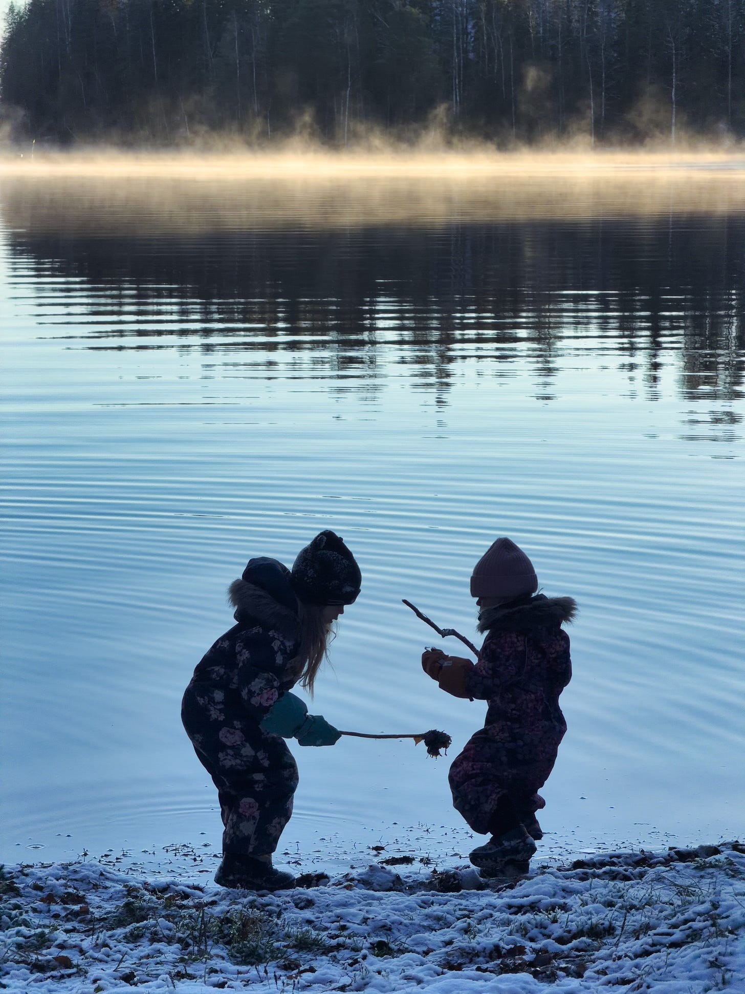 This is how our lovely trip ended. We returned to the cottage to light the fireplace and worked on a big Moomin puzzle. In the evening, the children still wanted to go outside, and while playing by the cottage shore, they discovered frosty frogs.