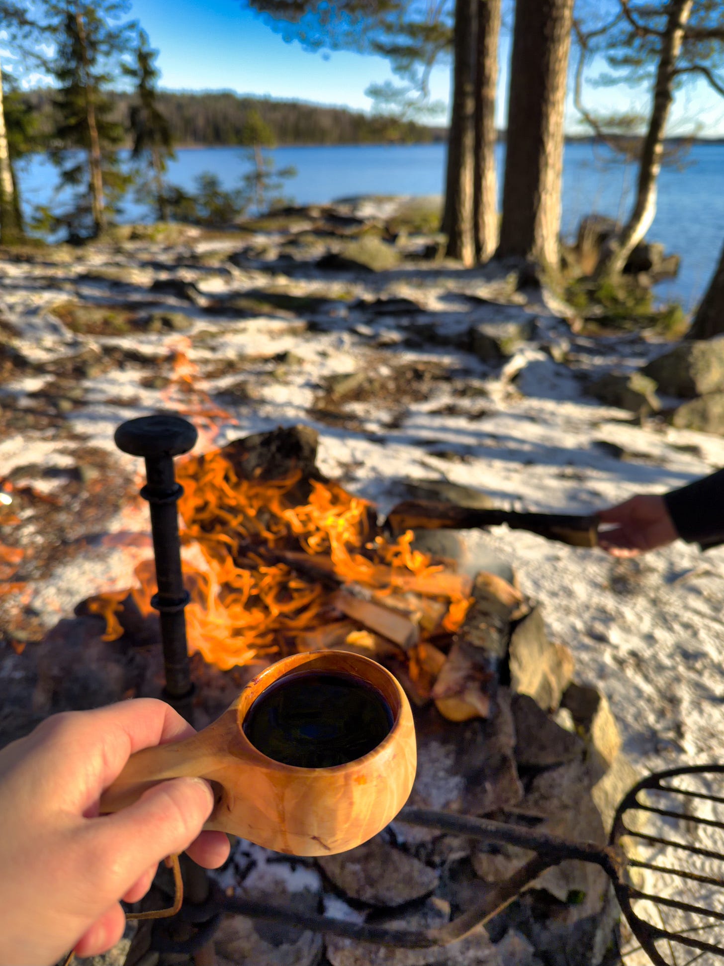 Despite the sun, the day was cold. I warmed up my fingers above the fire. We grilled Karelian pastries and cheese, and children had hot chocolate. My partner and I had another cups of coffee and the world felt just right. Everything was perfectly in place.