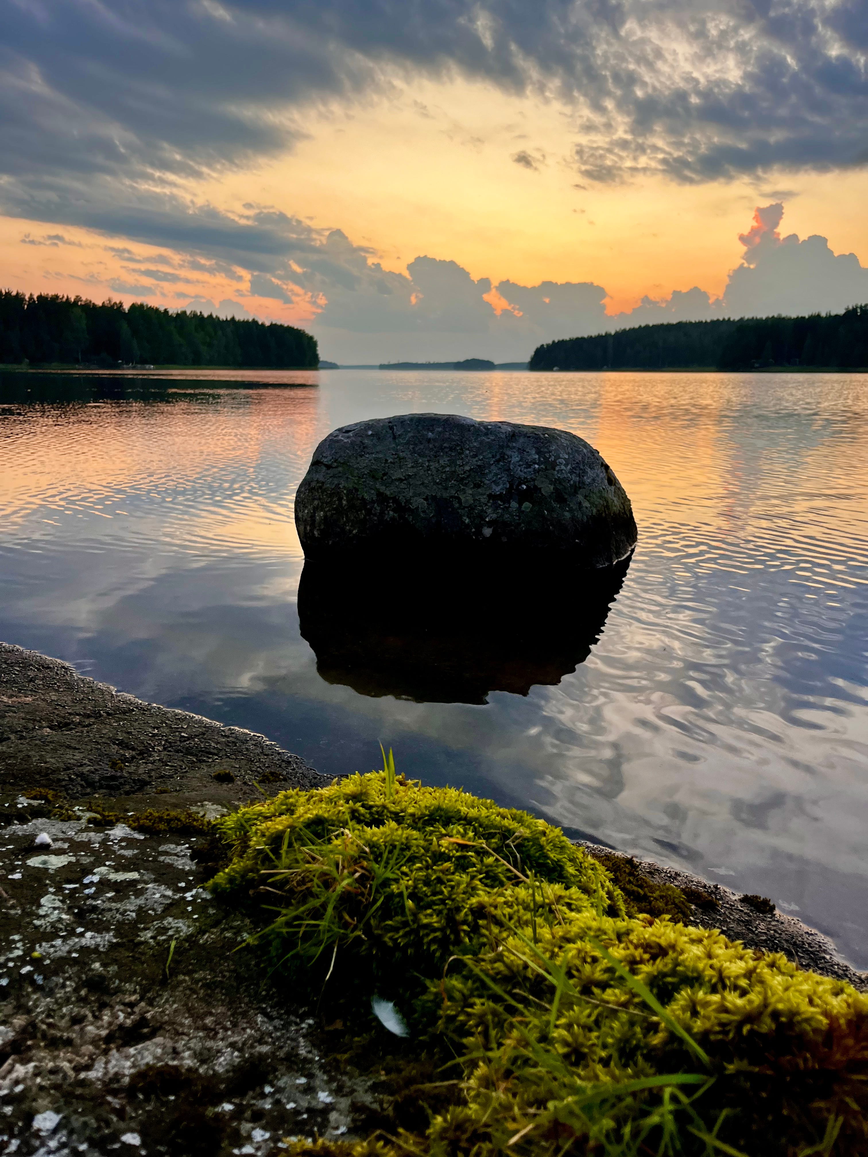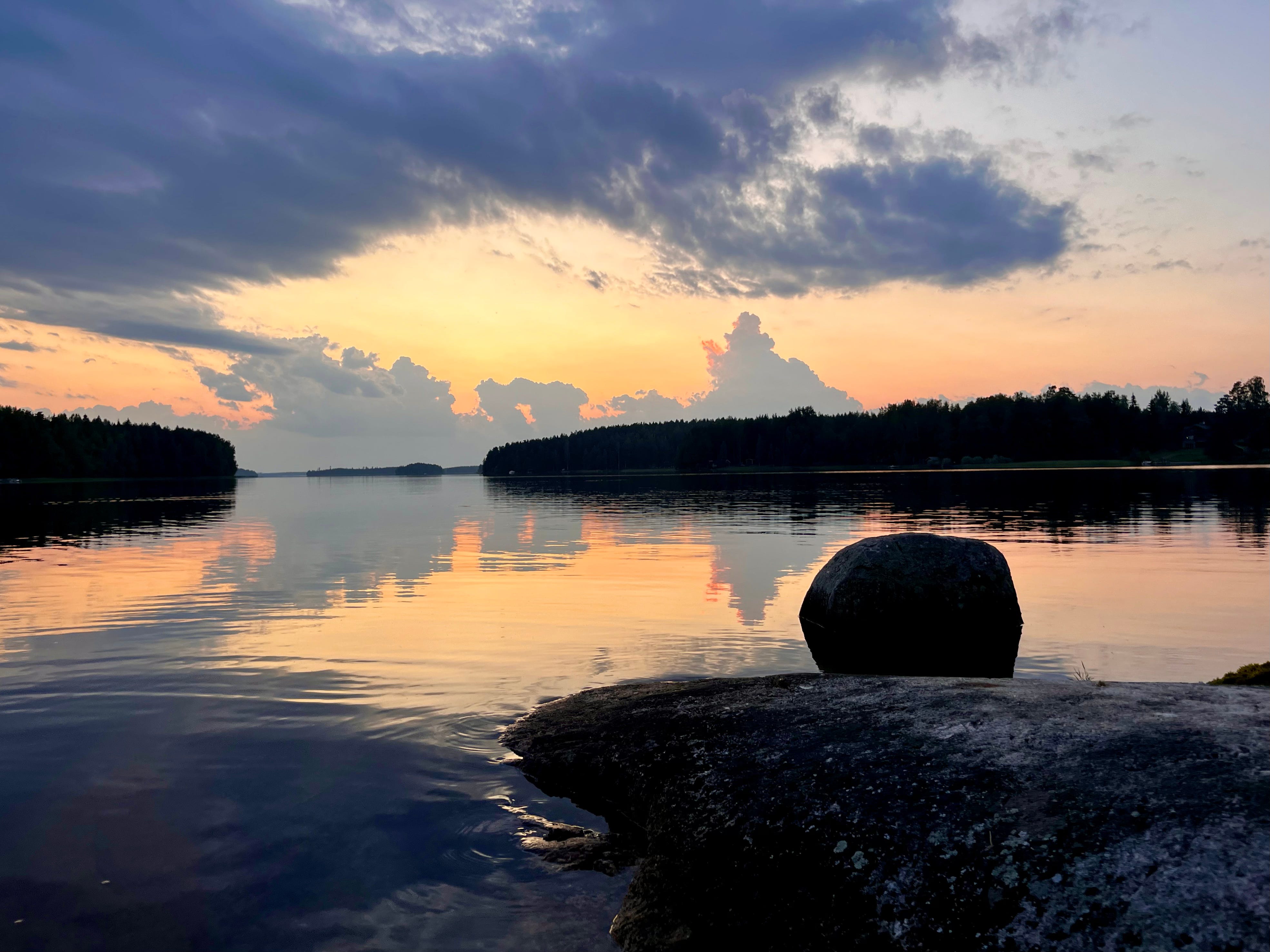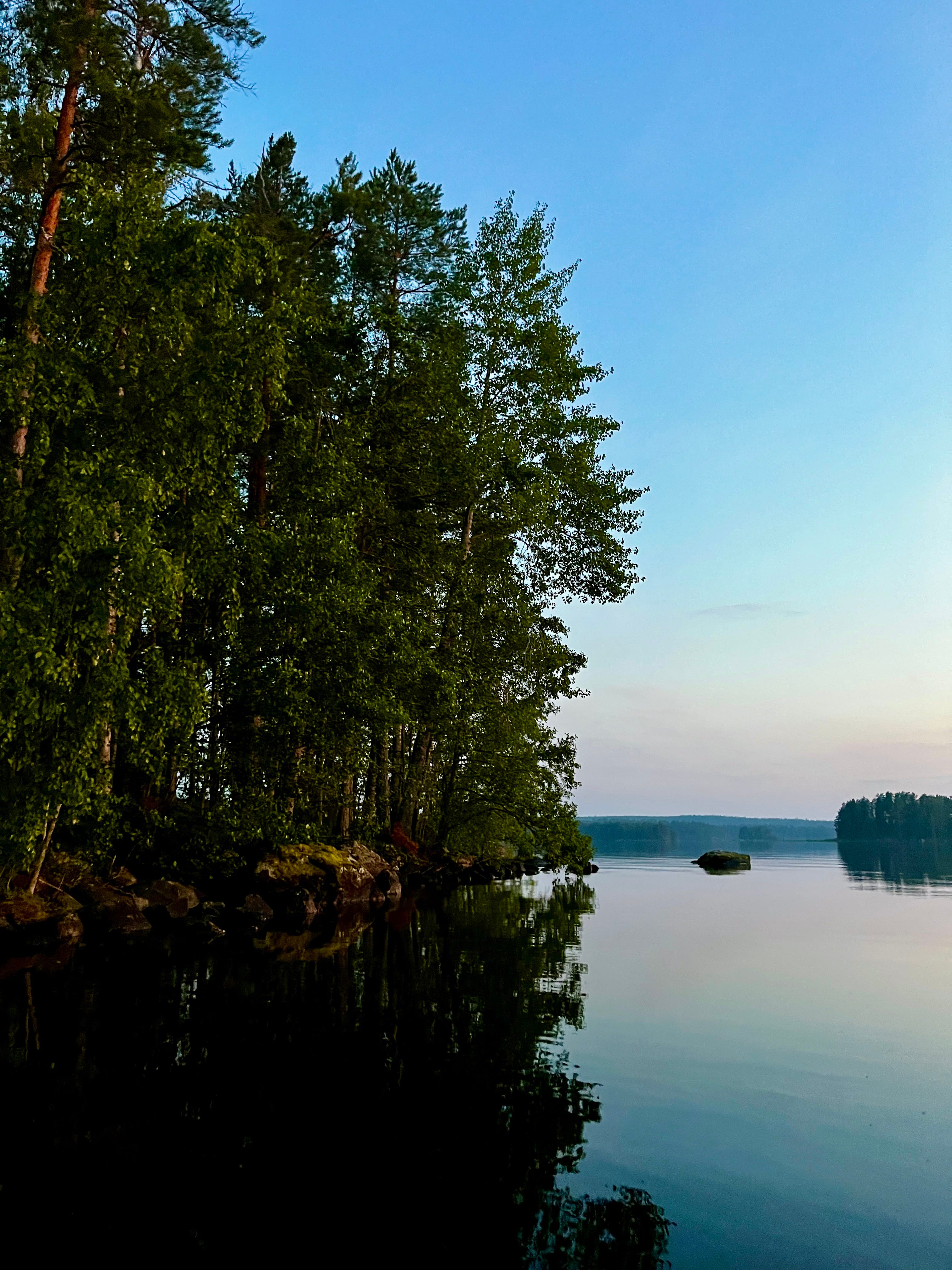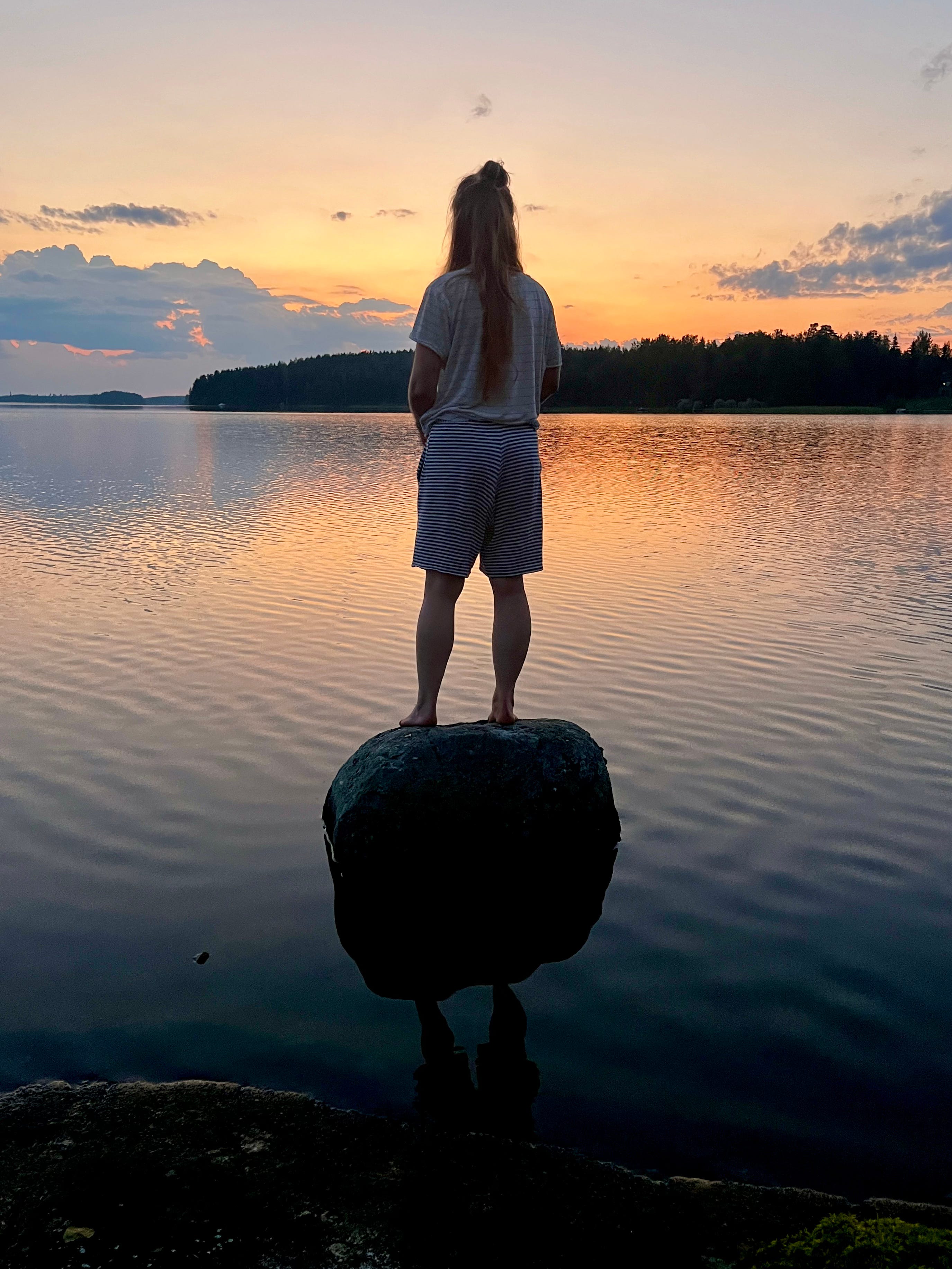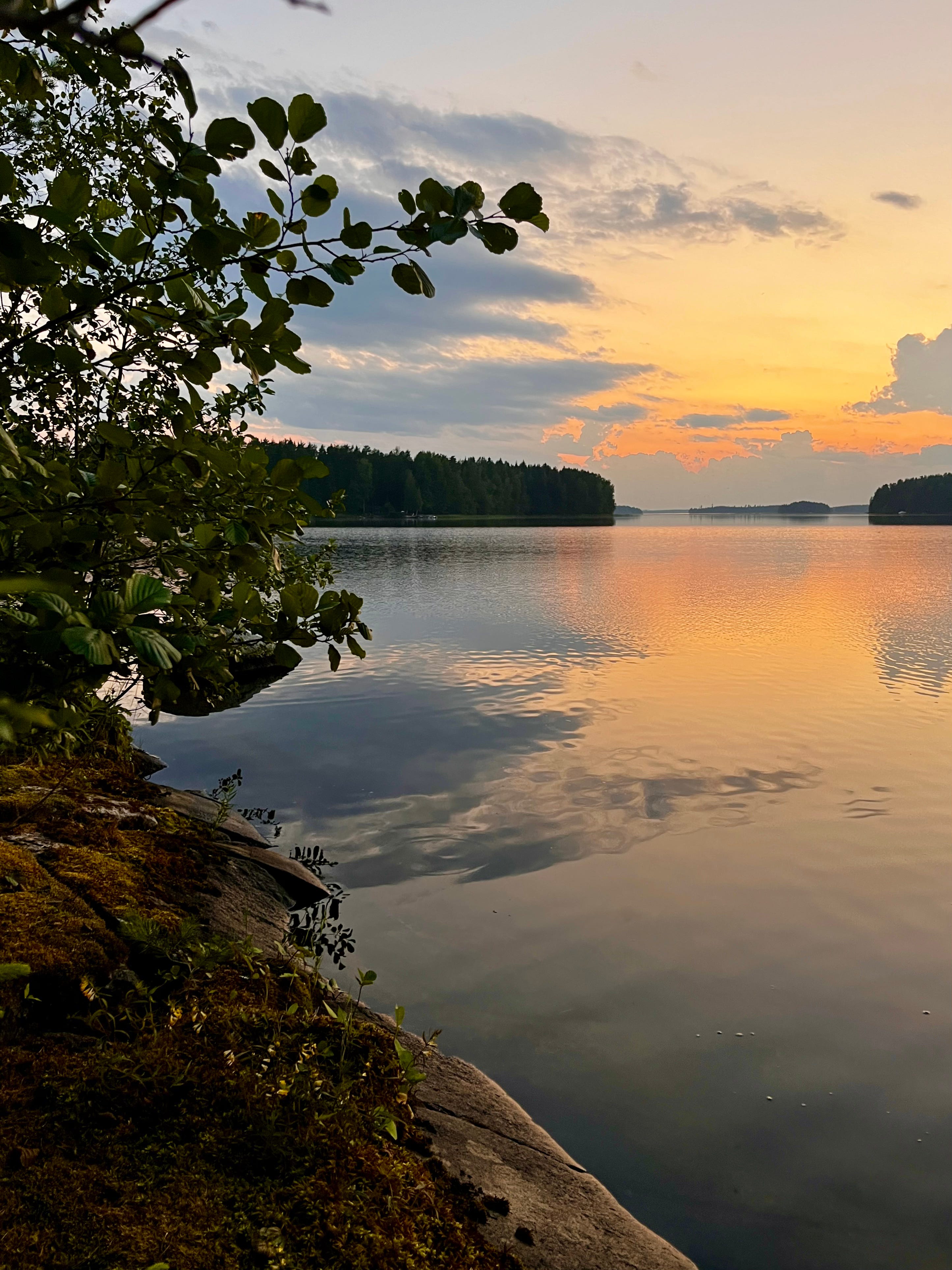 Tonight on the island, we watched the sunset, explored the shoreline, and waded barefoot along the rocky underwater edges. The island feels like it’s slowly crumbling — the water was filled with pieces of stone that had broken off the eroding cliffs . The most interesting detail is an X-shaped crack on the cliff. Coinsidence, or a sign of buried treasure left behind by the Pirates of Lake Päijänne?
