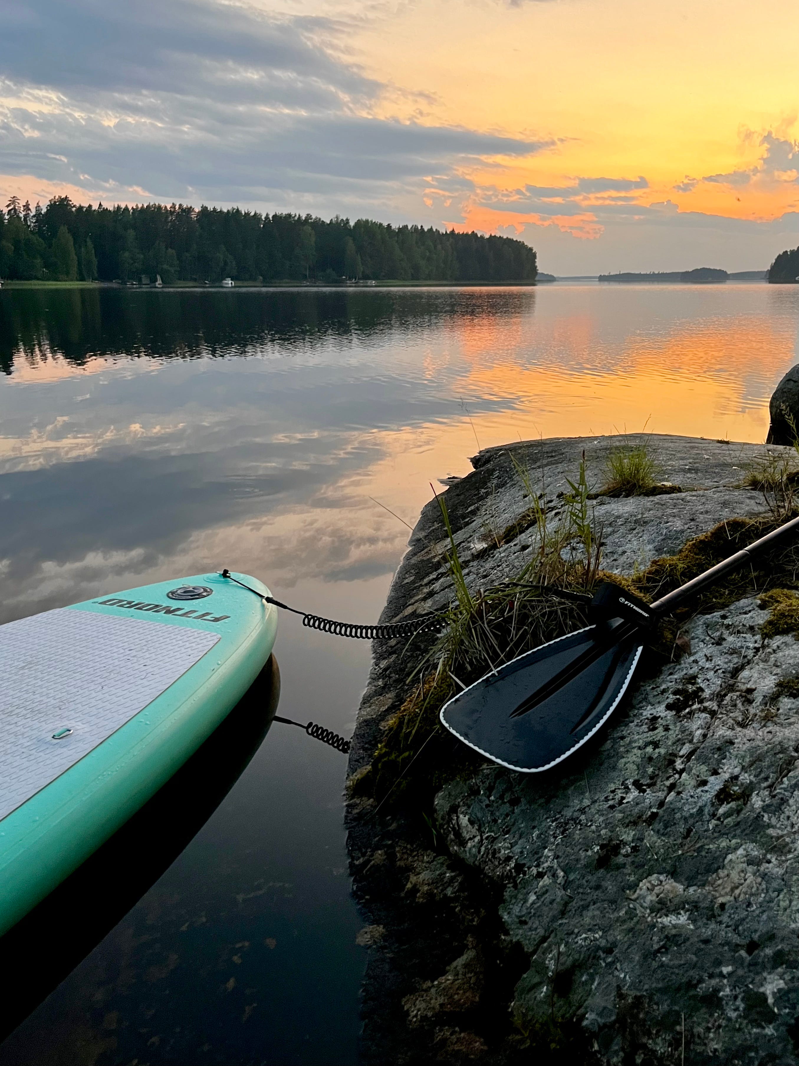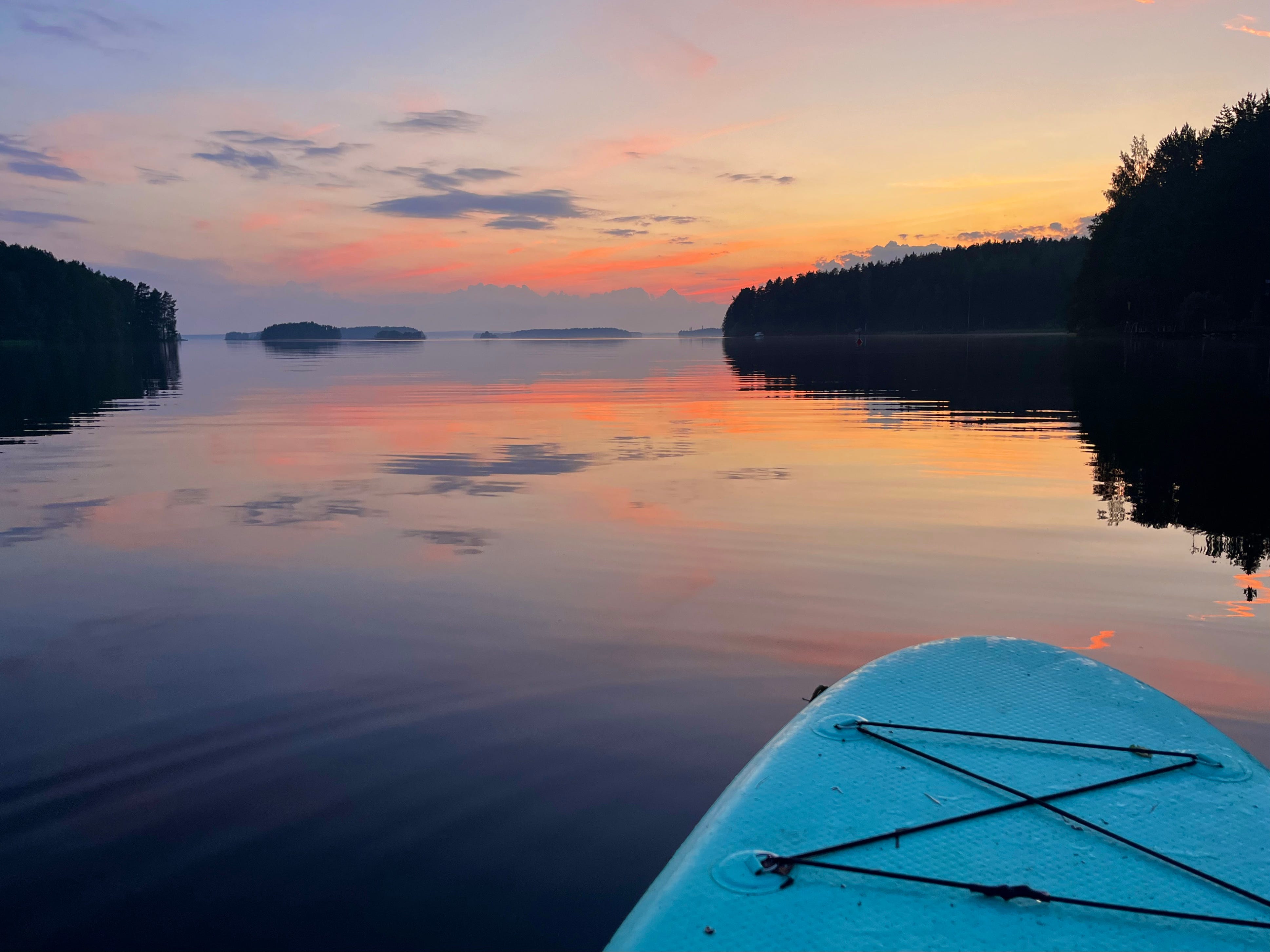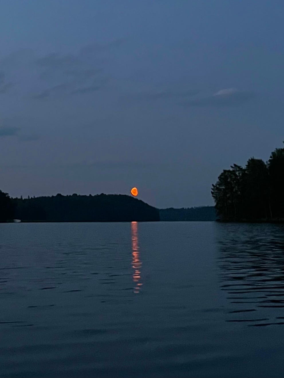 As it started to get dark, we were ready to return . I decided to swim back — it was nice change to slip into the water from the rocky shore. A bit exciting too, since I wasn’t sure if my feet might painfully hit the hidden rock. But they didn’t, and it felt wonderful to swim through the warm, refreshing water in the dark night, back towards our cottage. My parter paddled beside me, and during the journey back we saw a huge, orange moon, hanging low over the lake. Shame I couldn’t take a better picture of it — I was holding on to the edge of the paddleboard, and my hands were wet. But the moon guided our journey back to home shore.