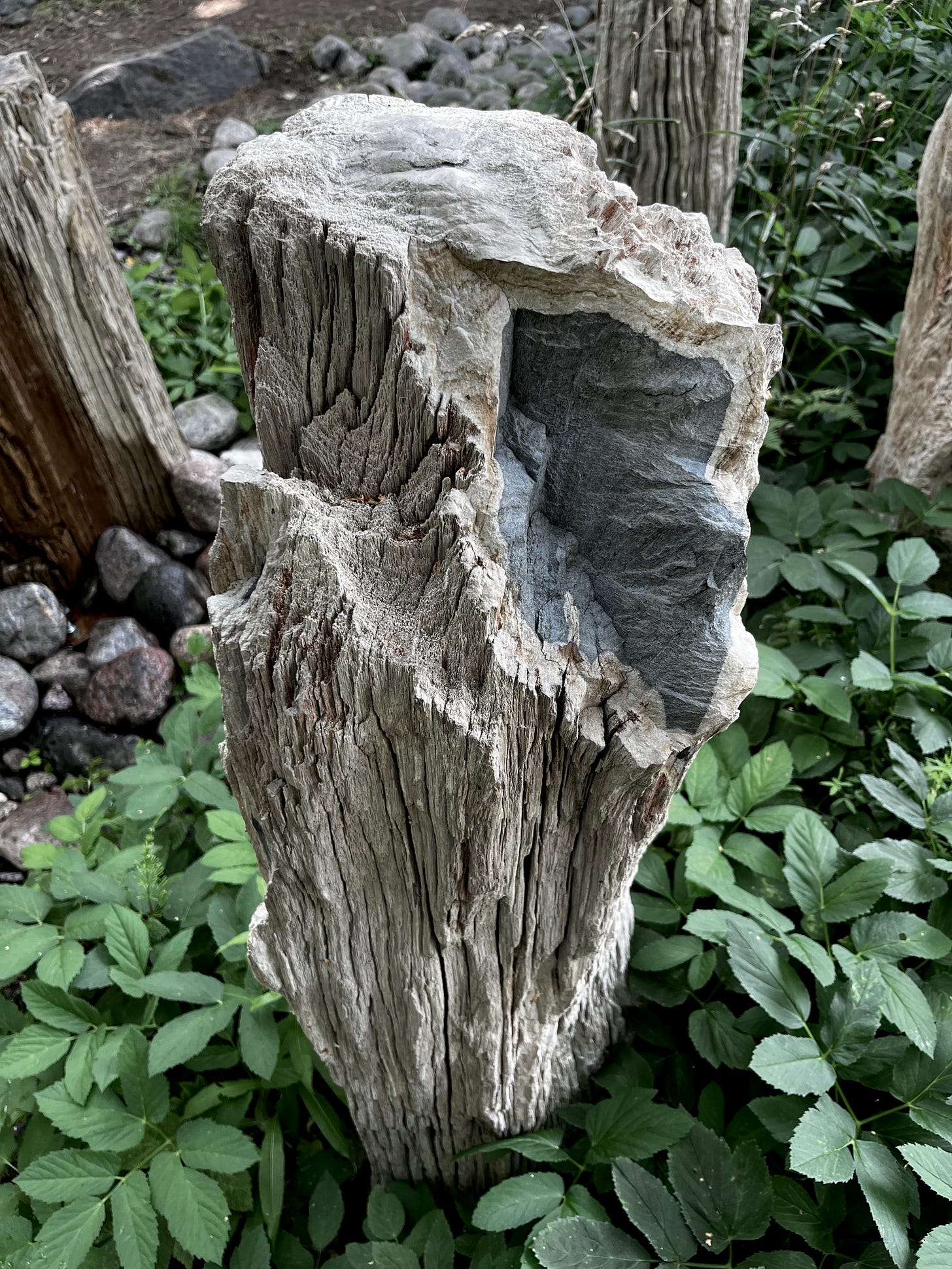 But I found out that actually a petrified tree isn’t wood anymore. The wood material has been substituted with stone, but every little detail of the tree has been preserved in the sediment, a layer of the earth. So it’s kind of false wood.